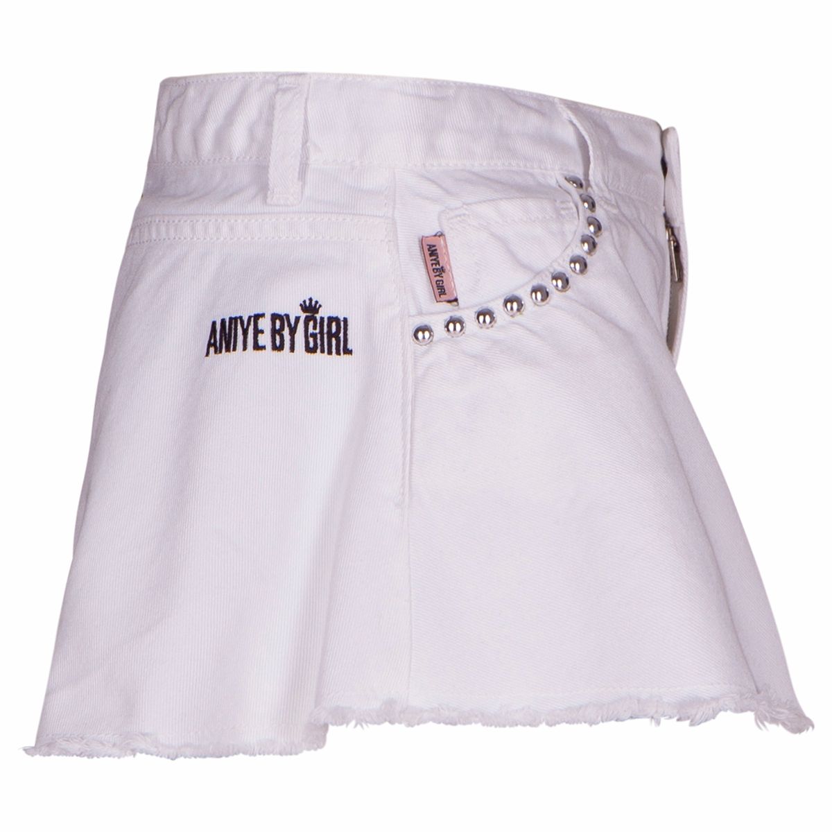 SHORTS PER RAGAZZA, DENIM BIANCO CON BORCHIE.
