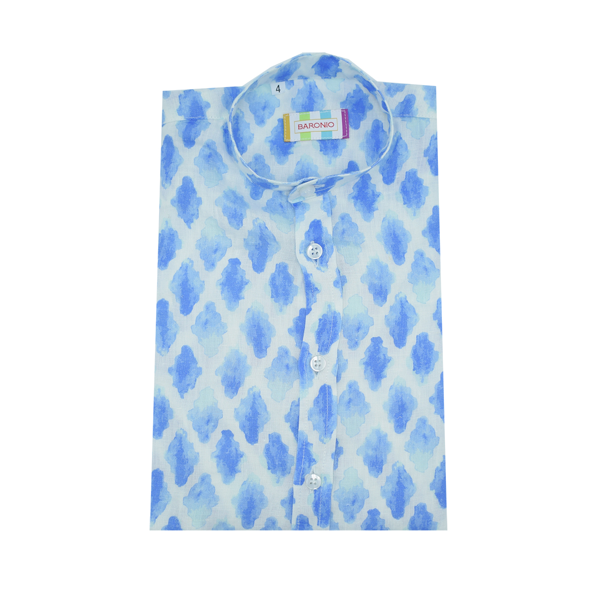 L'articolo Baronio Bambino Camicia In Lino Collo Coreana Stampa Blu. è stato aggiunto al carrello