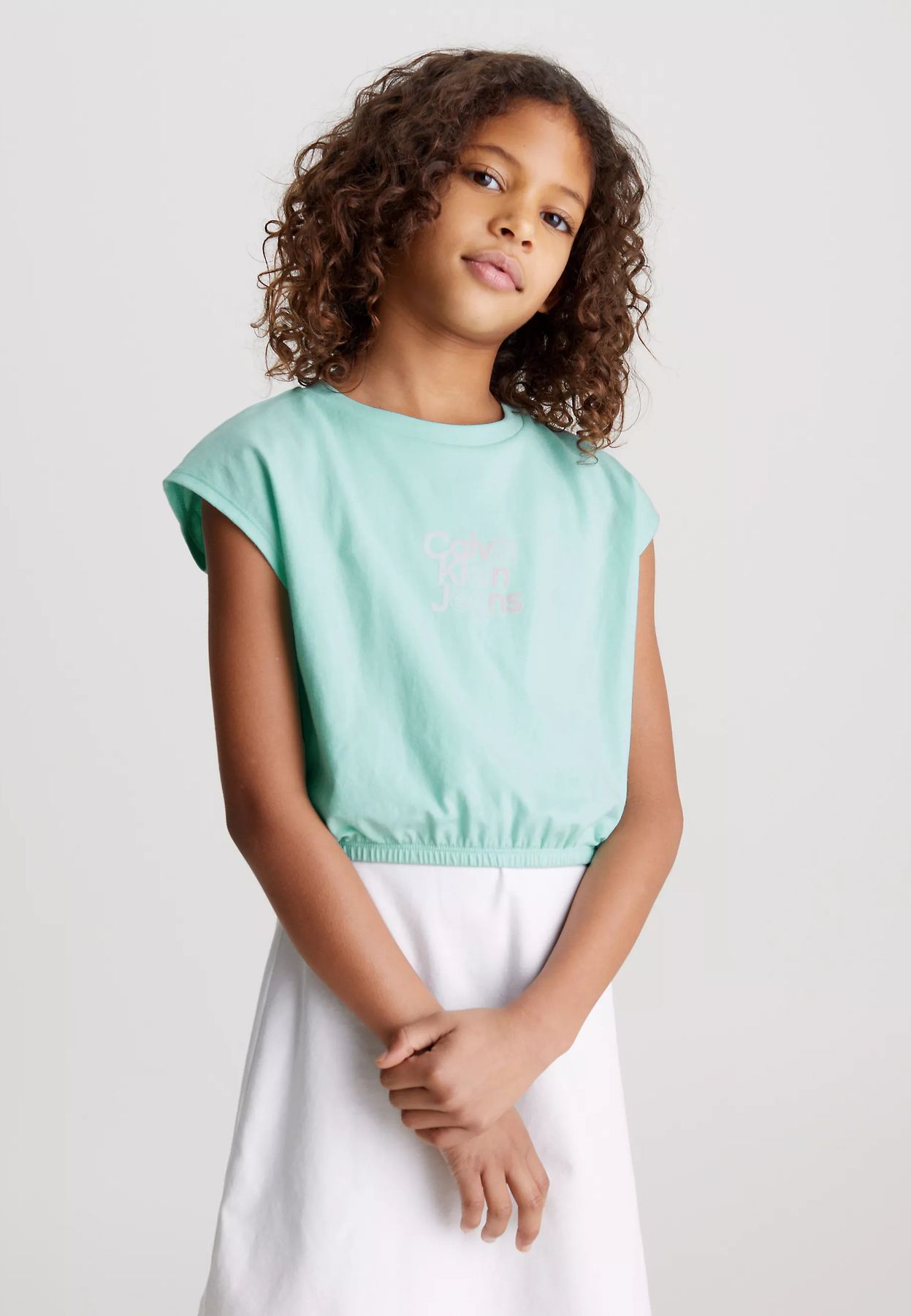 Calvin Klein Bambina T-shirt Cropped Per Ragazza Con Logo Rosa.
