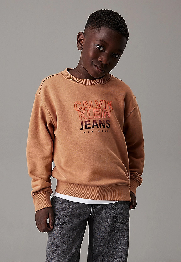 Calvin Klein Bambino Felpa Marrone Per Ragazzo Con Logo Arancio.