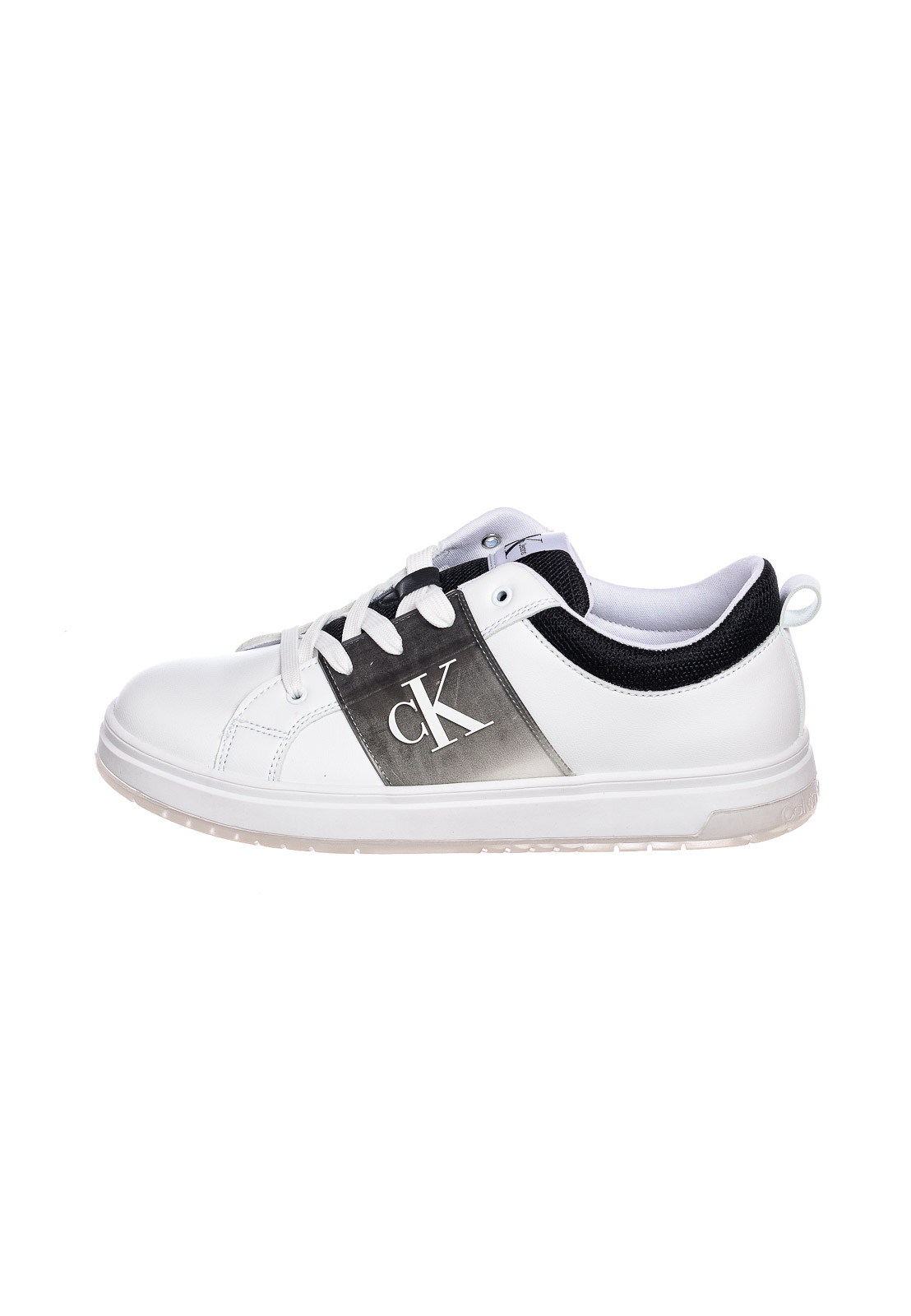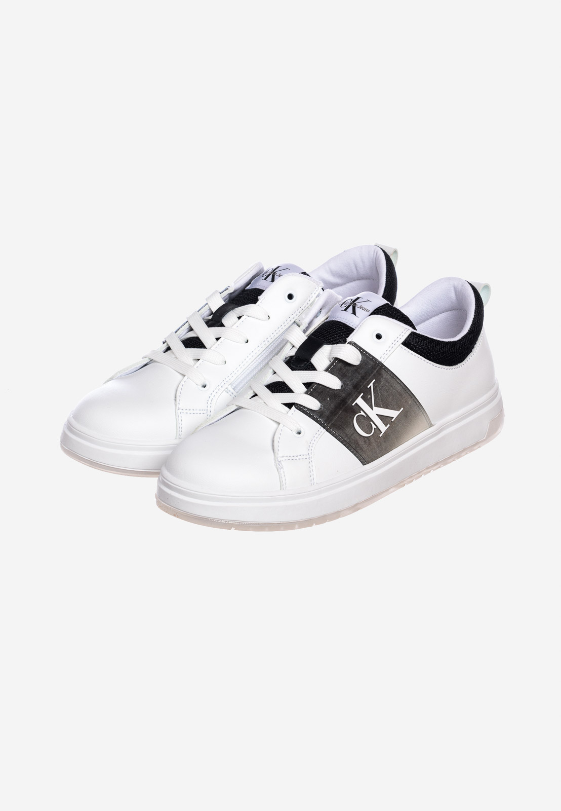 Calvin Klein Bambino Sneakaers Bianca Con Fascia Nera Logata.