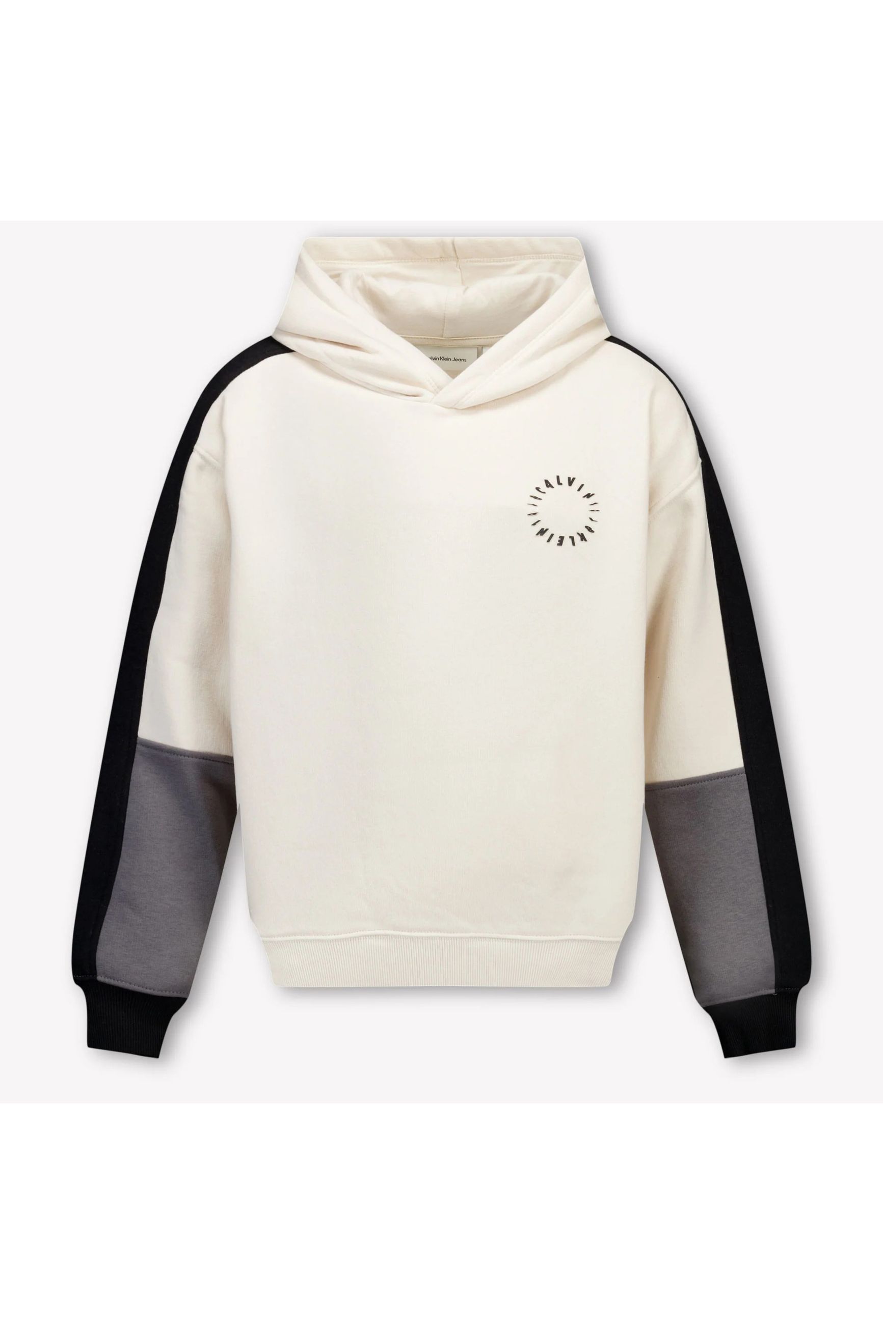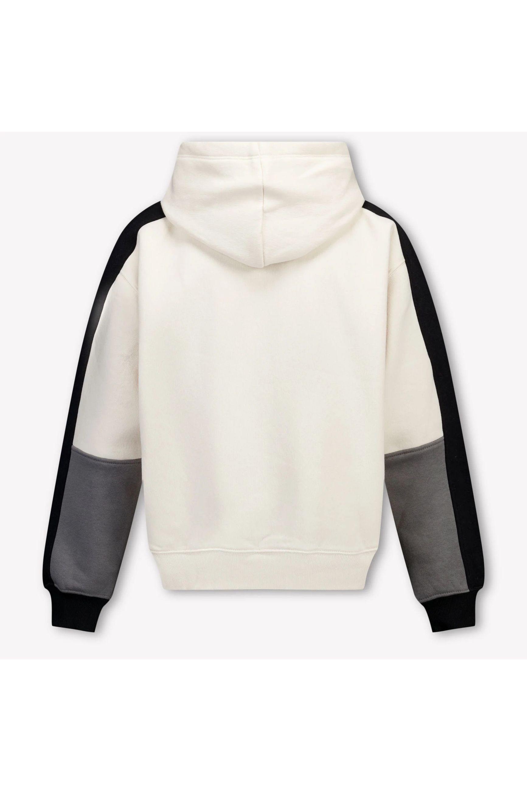 FELPA BEIGE CON CAPPUCCIO MANICHE GRIGIO NERE.