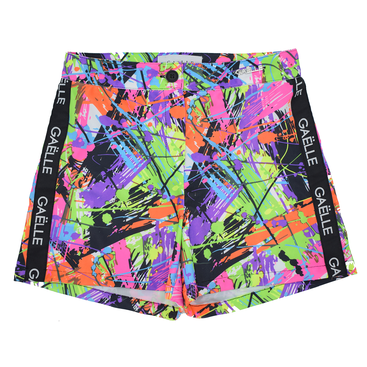 SHORTS PER RAGAZZA MULTICOLOR, ON BANDE LATERALI LOGATE.