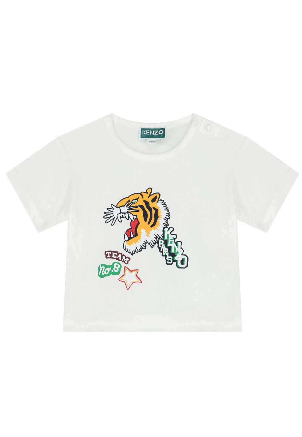 T-SHIRT BIANCA CON STAMPA TIGRE E LOGO.