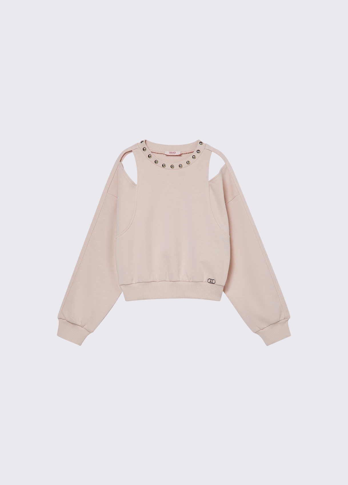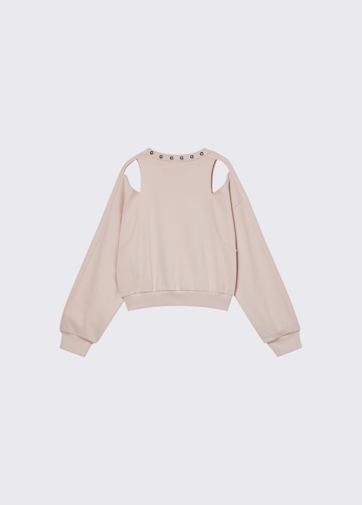 FELPA CON APERTURA SULLE SPALLE E BORCHIE.