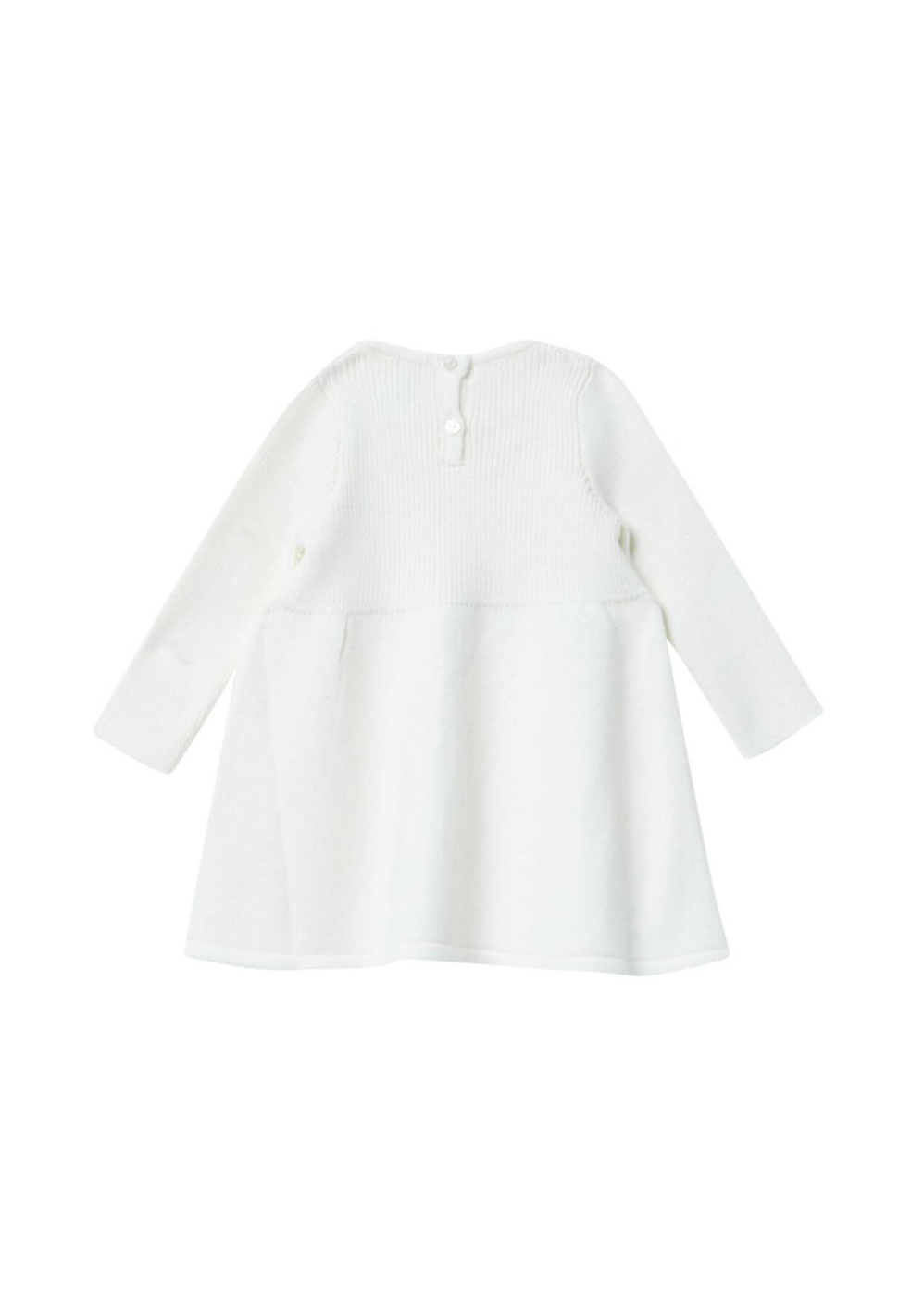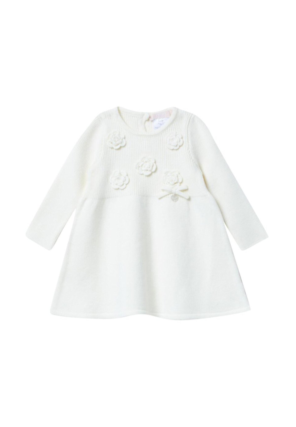 ABITO IN LANA PANNA PER NEONATO CON CORPETTO A COSTINE E APPLICAZIONE DI FIORI.