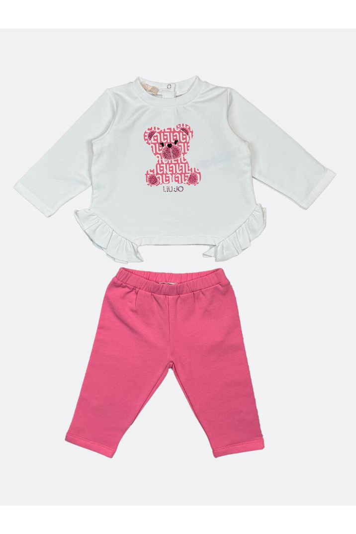MAXI FELPA STAMPA ORSETTO E LEGGINGS ROSA.