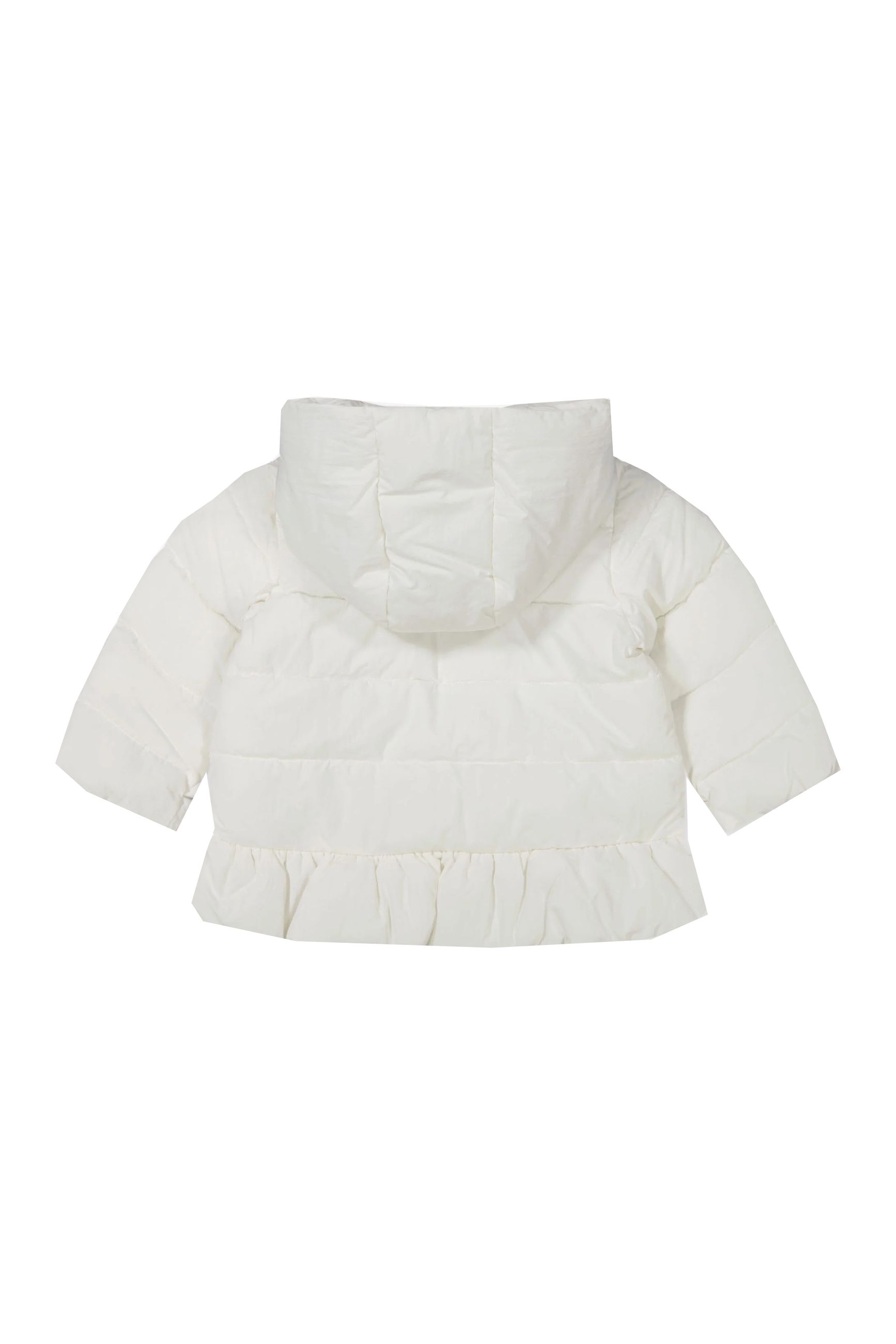 PIUMINO BIANCO PER NEONATA CON CAPPUCCIO.