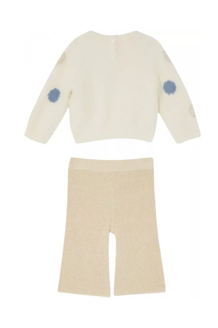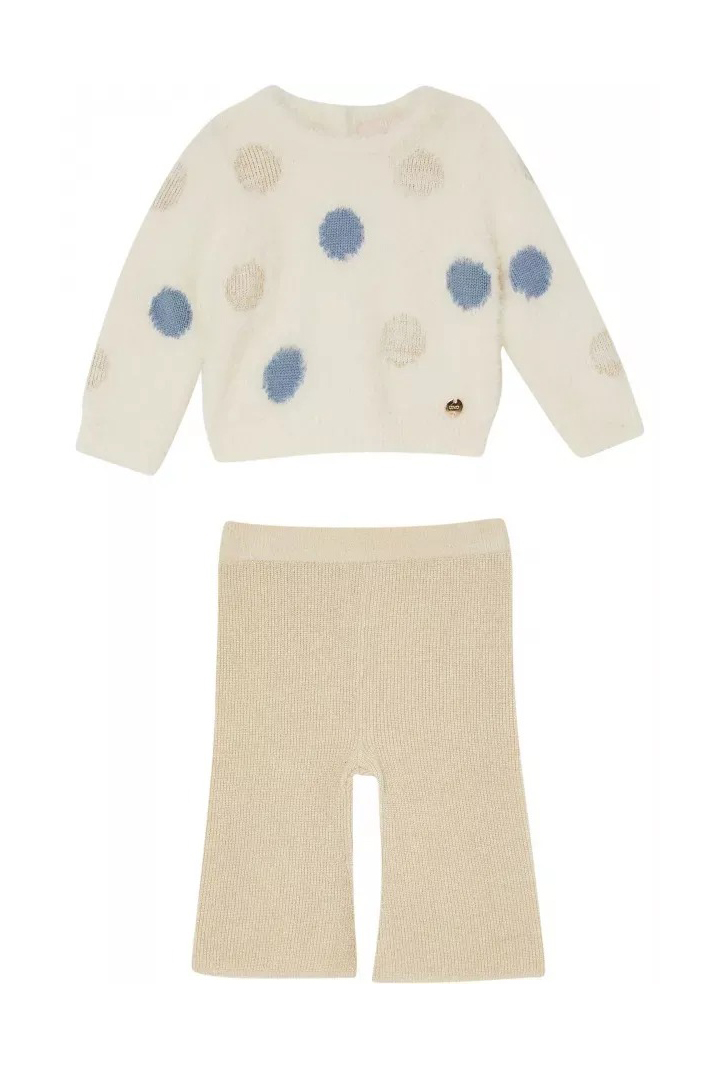 COMPLETO PER NEONATA MAGLIA CON POIS E PANTALONE A COSTINE IN LUREX ORO.