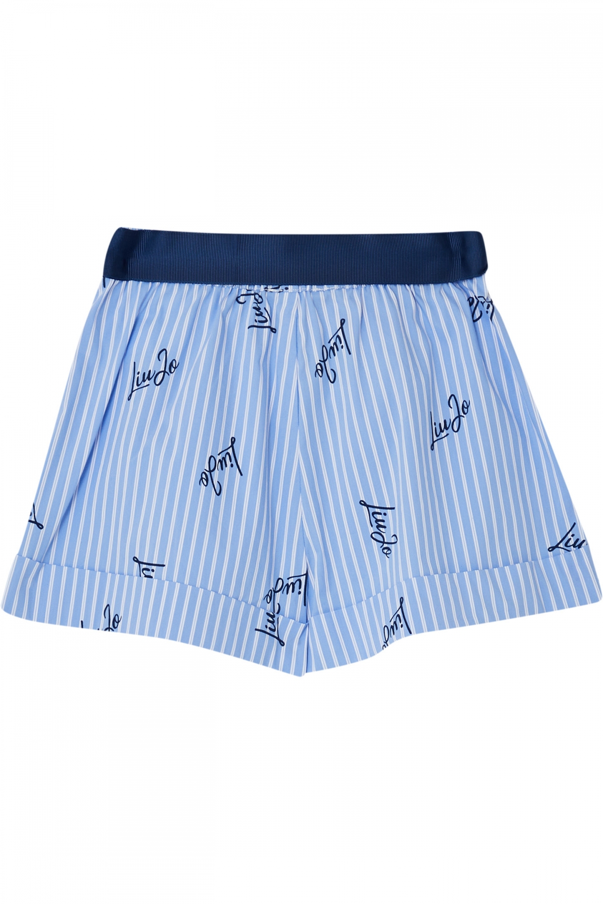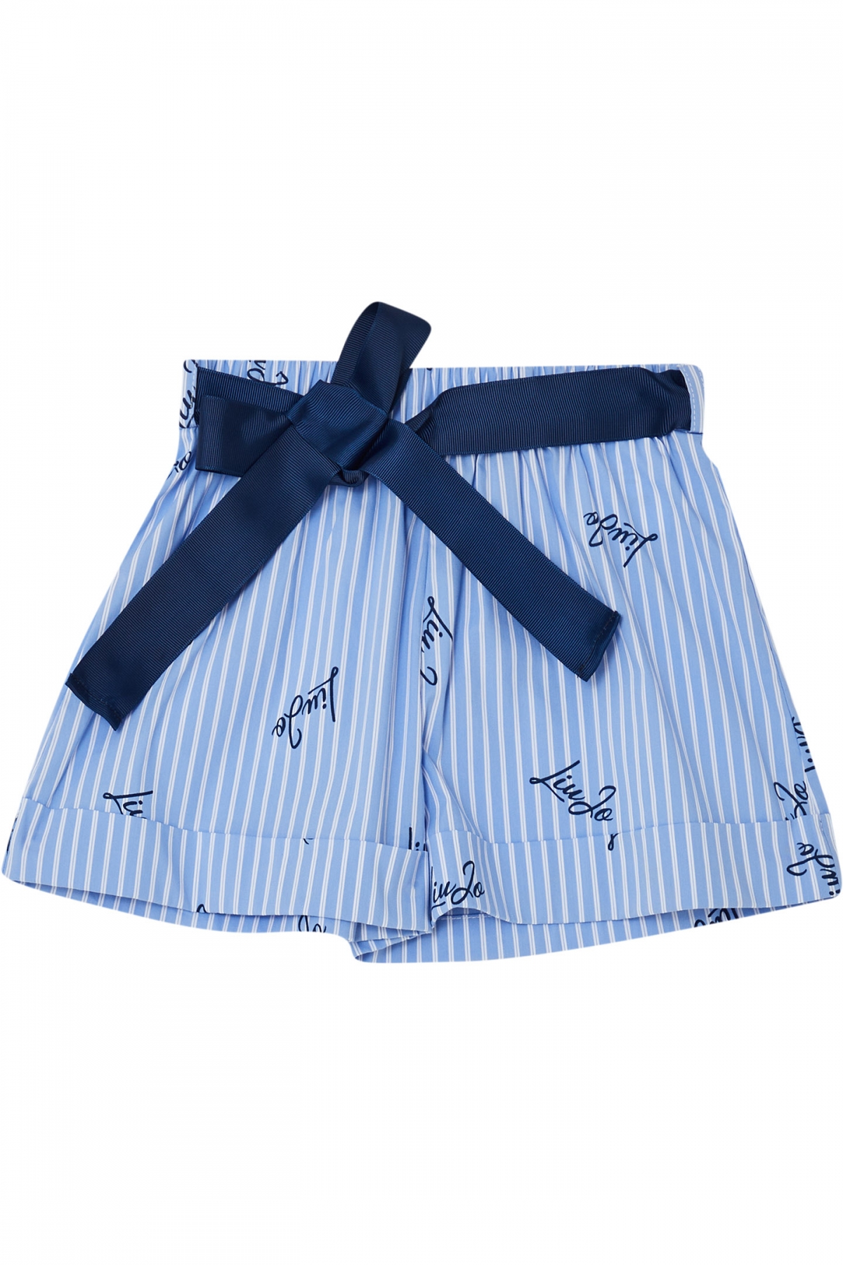 SHORTS PER BAMBINA A RIGHE CON STAMPA LOGO.