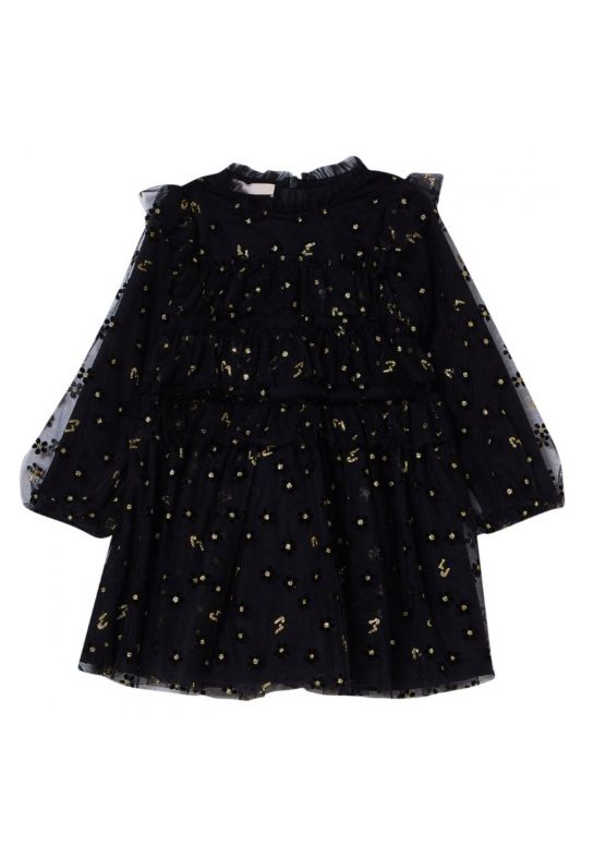 ABITO IN TULLE NERO CON LOGO IN GLITTER ORO.