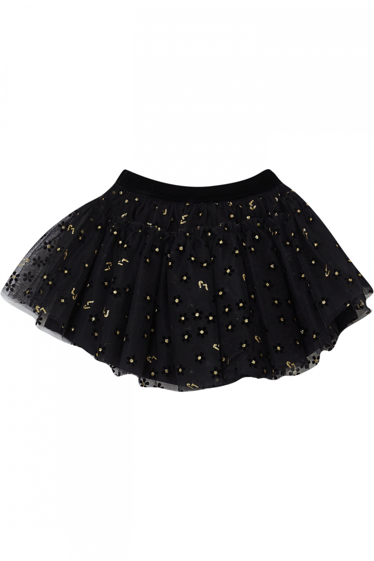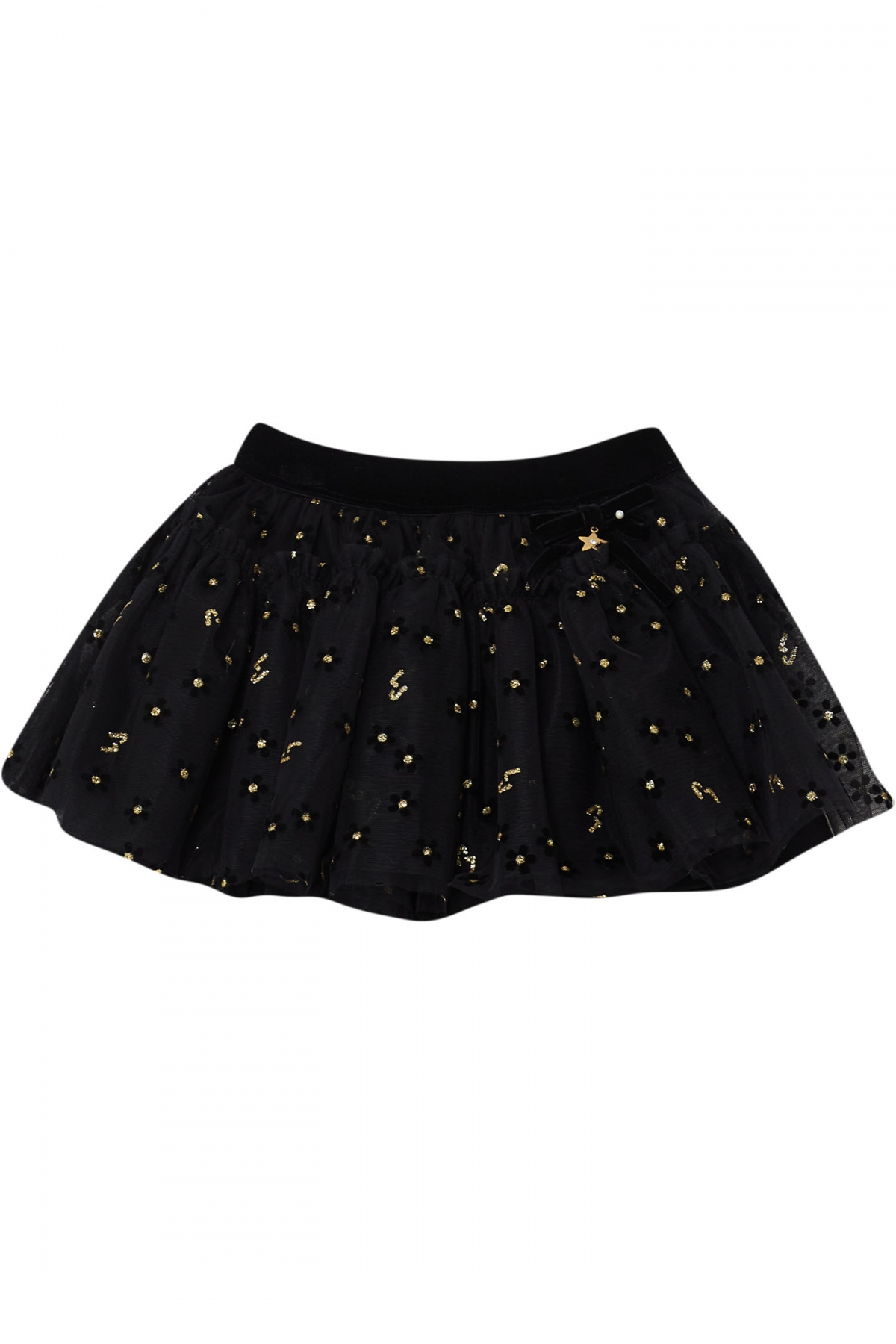GONNA NERA IN TULLE CON FIORI IN VELLUTE E GLITTER ORO.