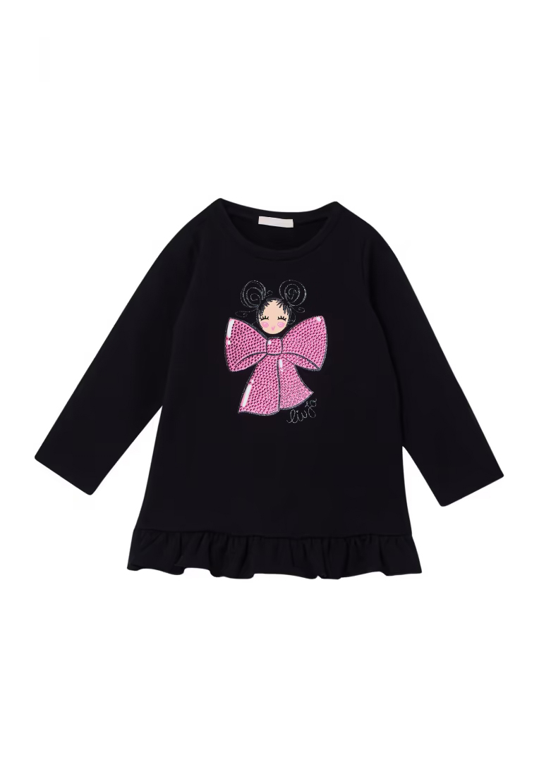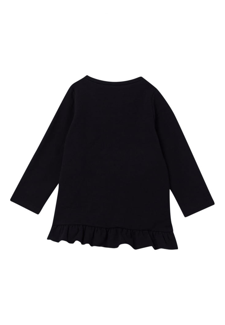 MAXI FELPA NERA PEER BAMBINA CON STAMPA FIOCCO E STRASS.