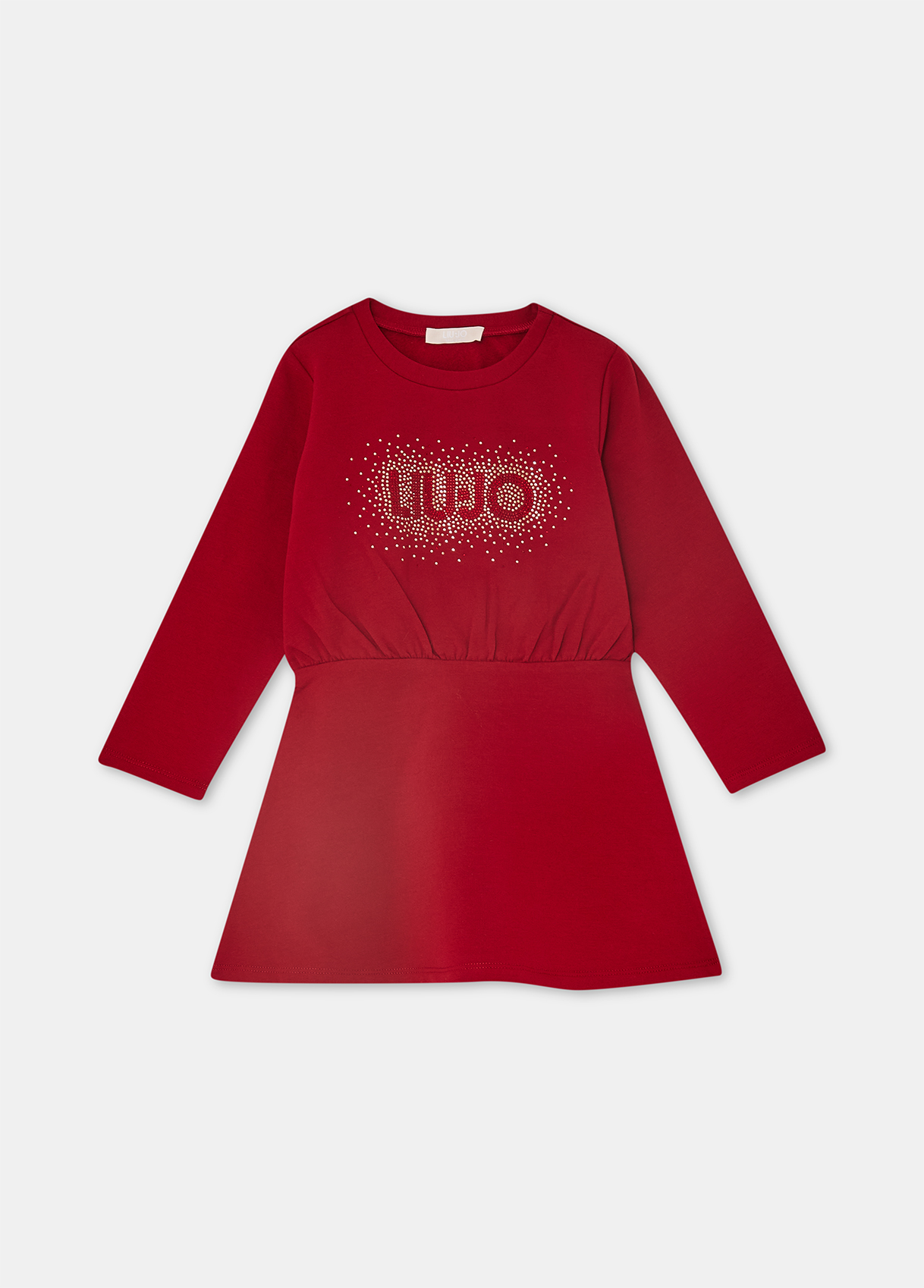 ABITO IN FELPA ROSSO, LOGO CON BORCHIE ORO.