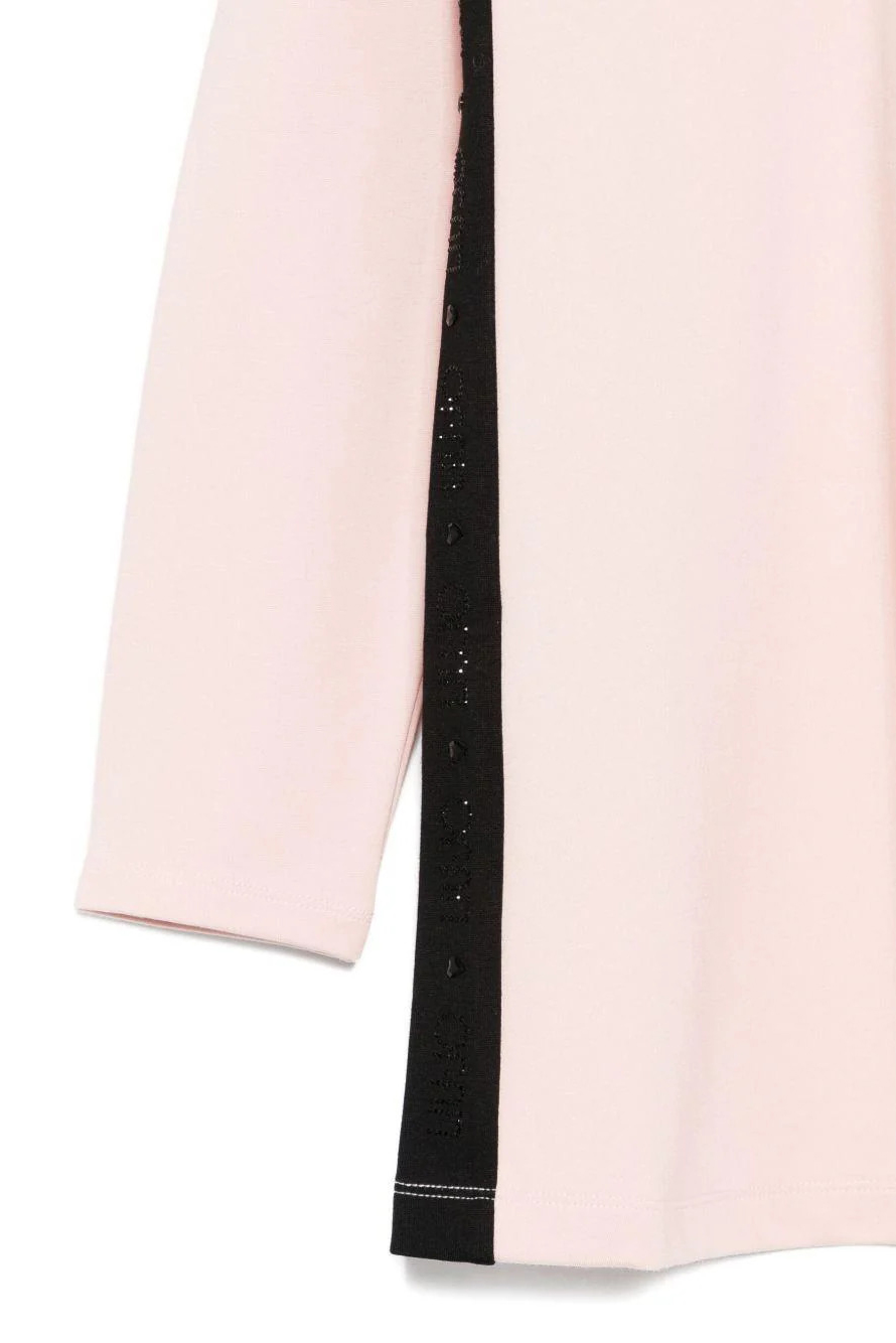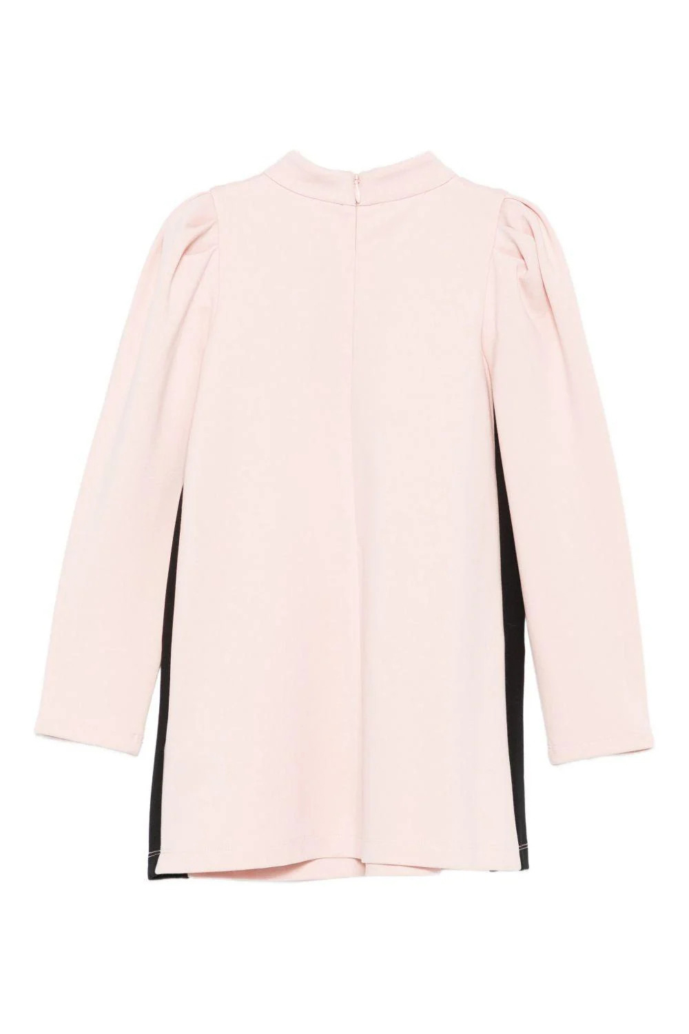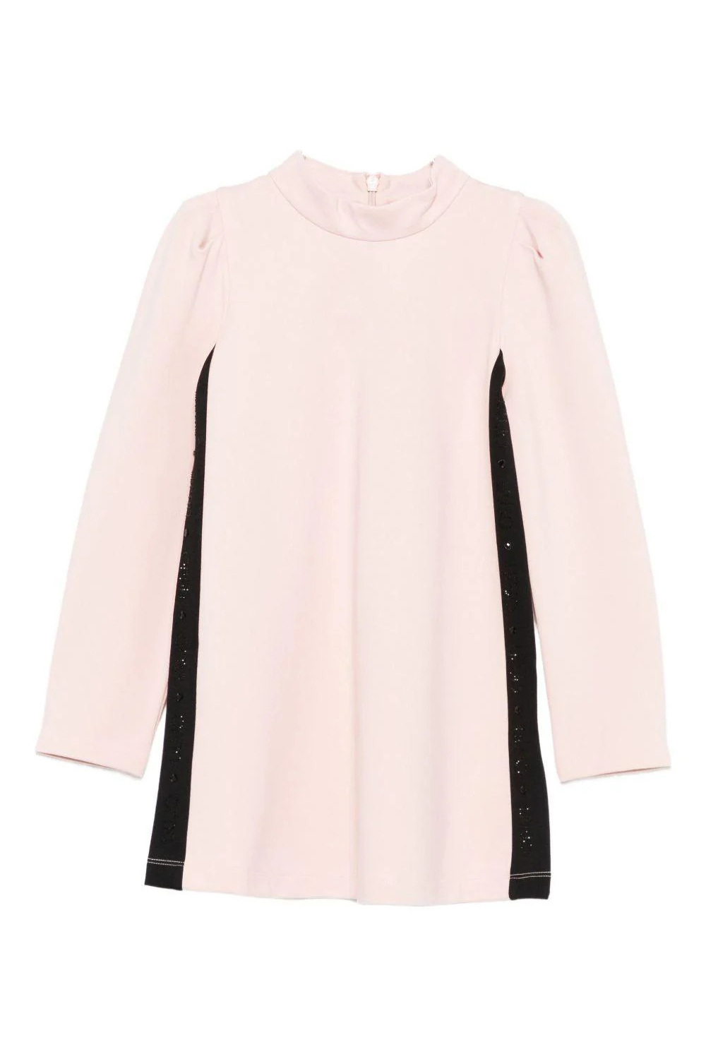 ABITO ROSA A COLLO ALTO CON BANDA LATERALE NERA.