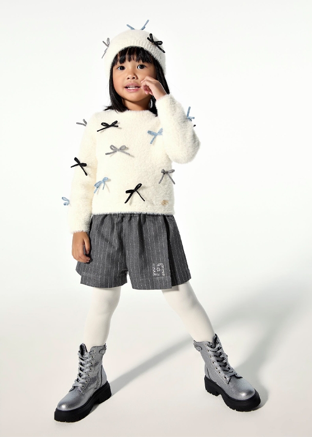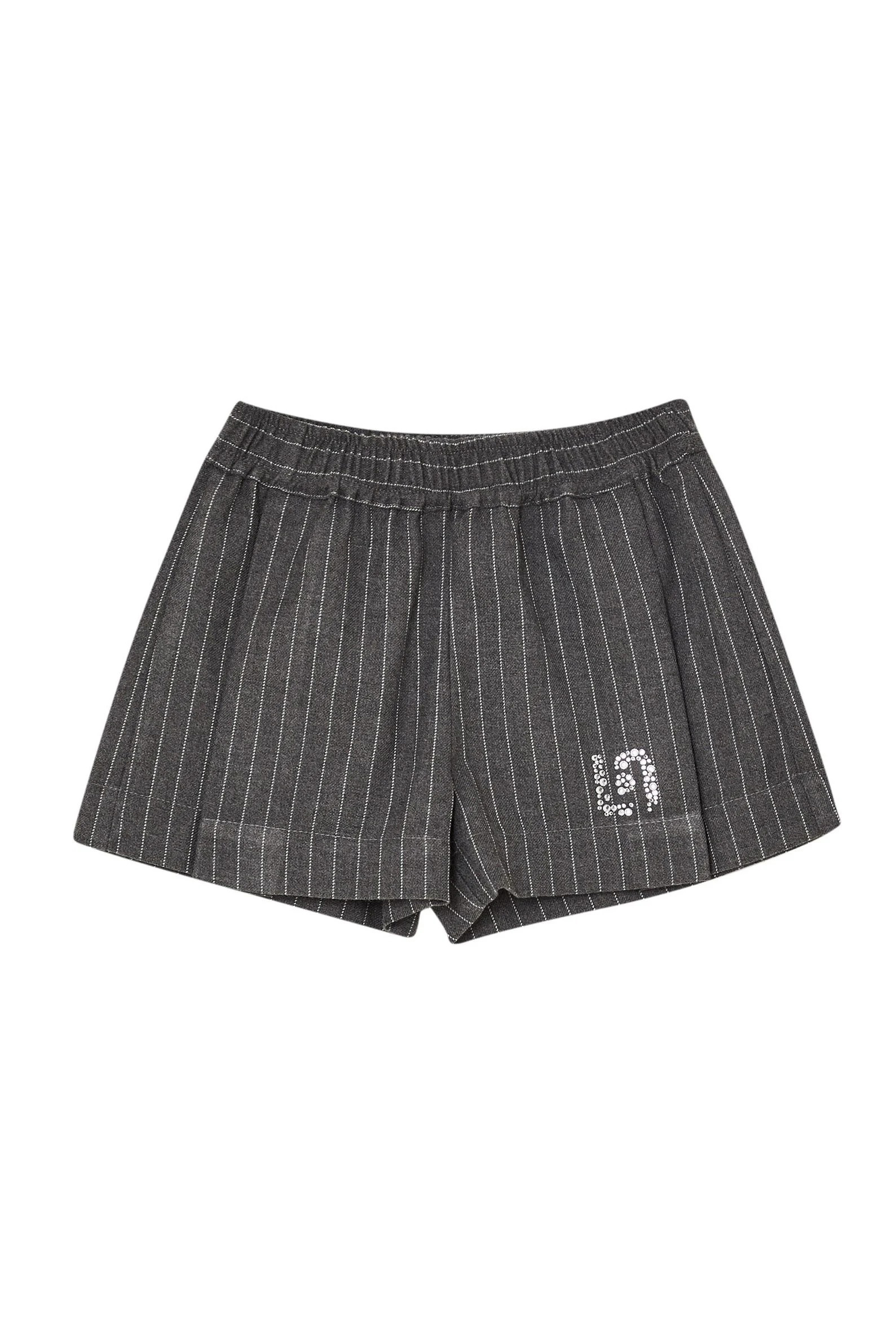SHORTS GRIGIO A RIGHE CON LOGO IN STRASS.
