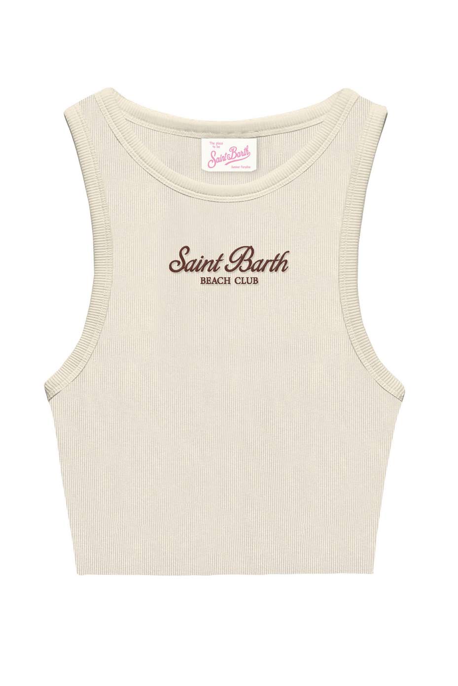 CANOTTA PANNA CON RICAMO LOGO MARRONE.