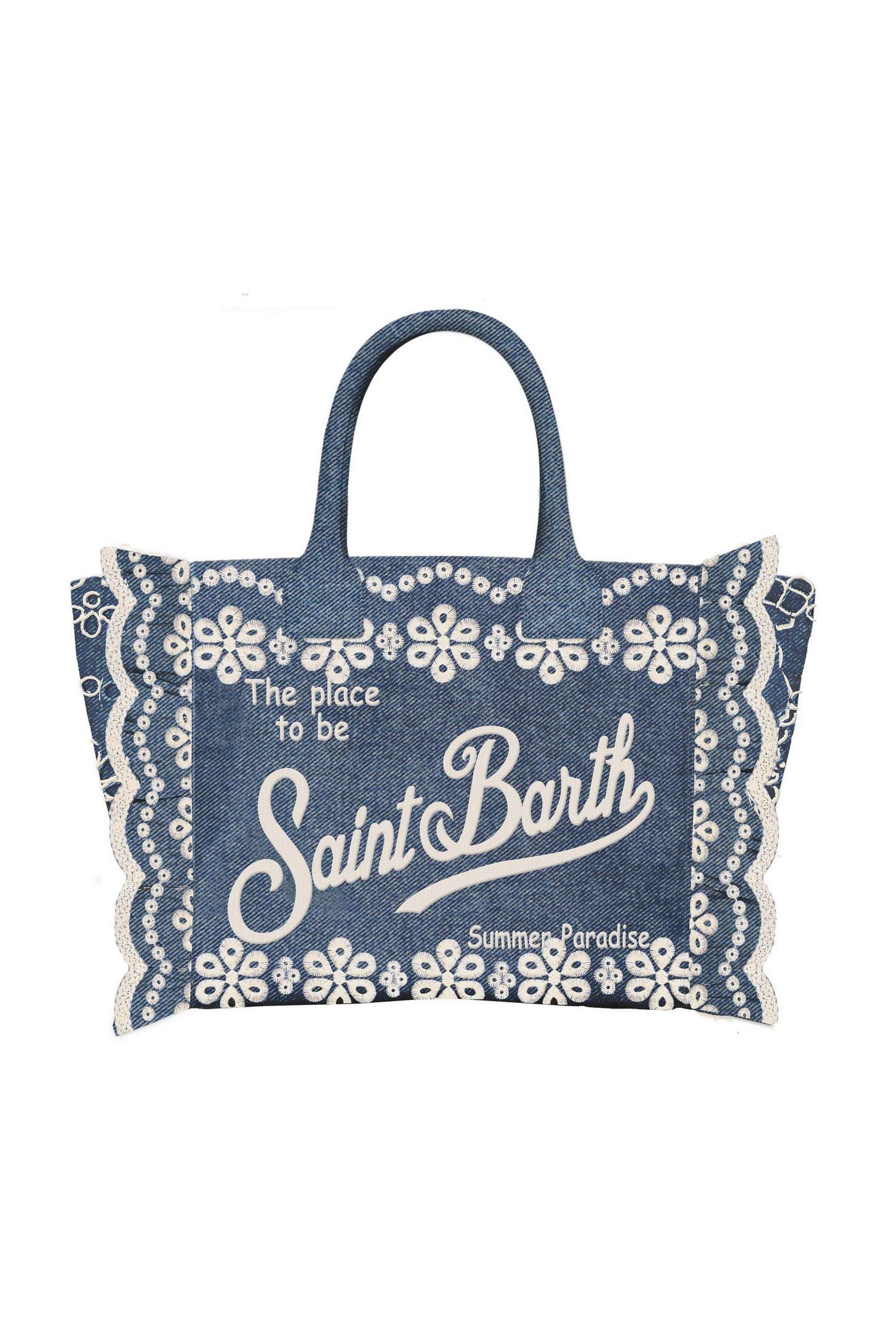 BORSA CON TRACOLLA IN TESSUTO JEANS.