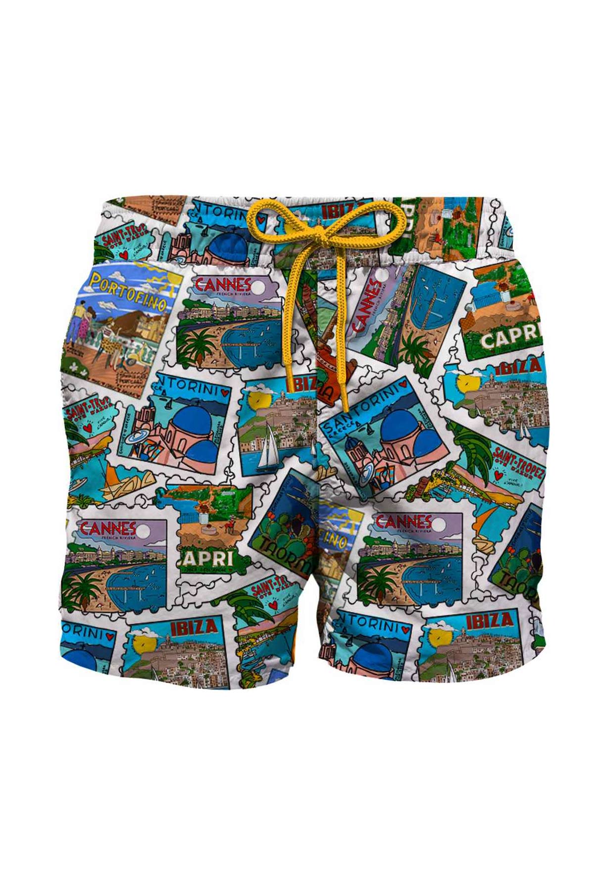 PANTALONCINO DA MARE STAMPA FRANCOBOLLI.