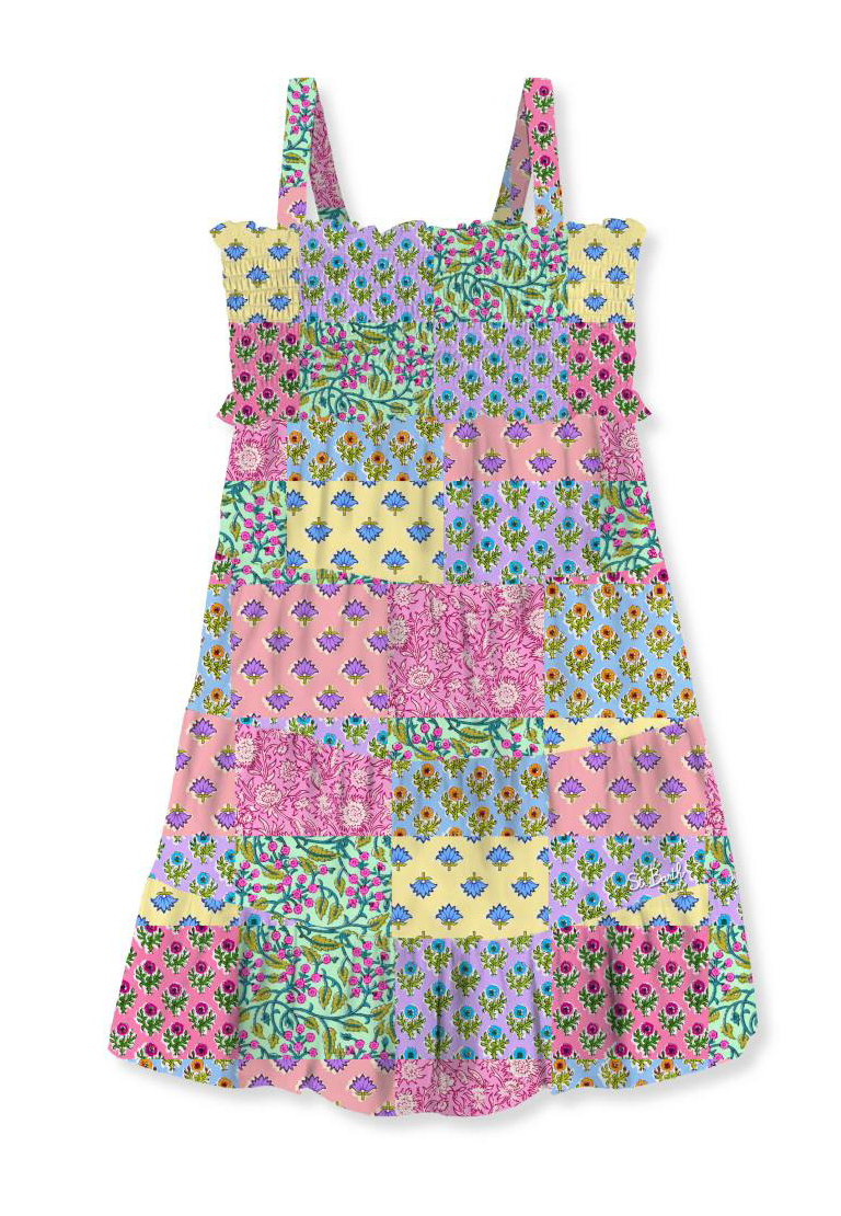 ABITO LUNGO PER BAMBINA STAMPA FLOREALE MULTICOLOR.