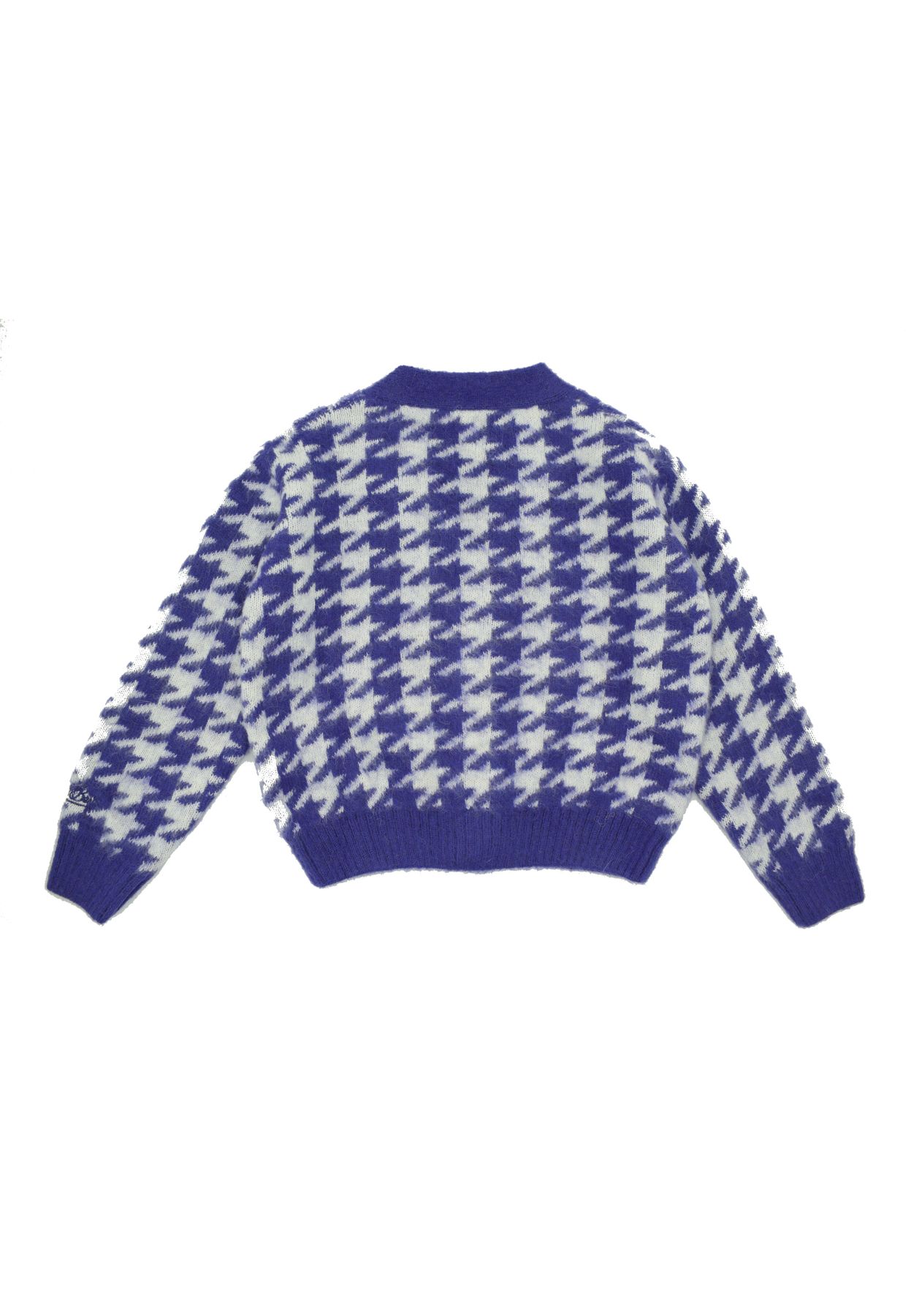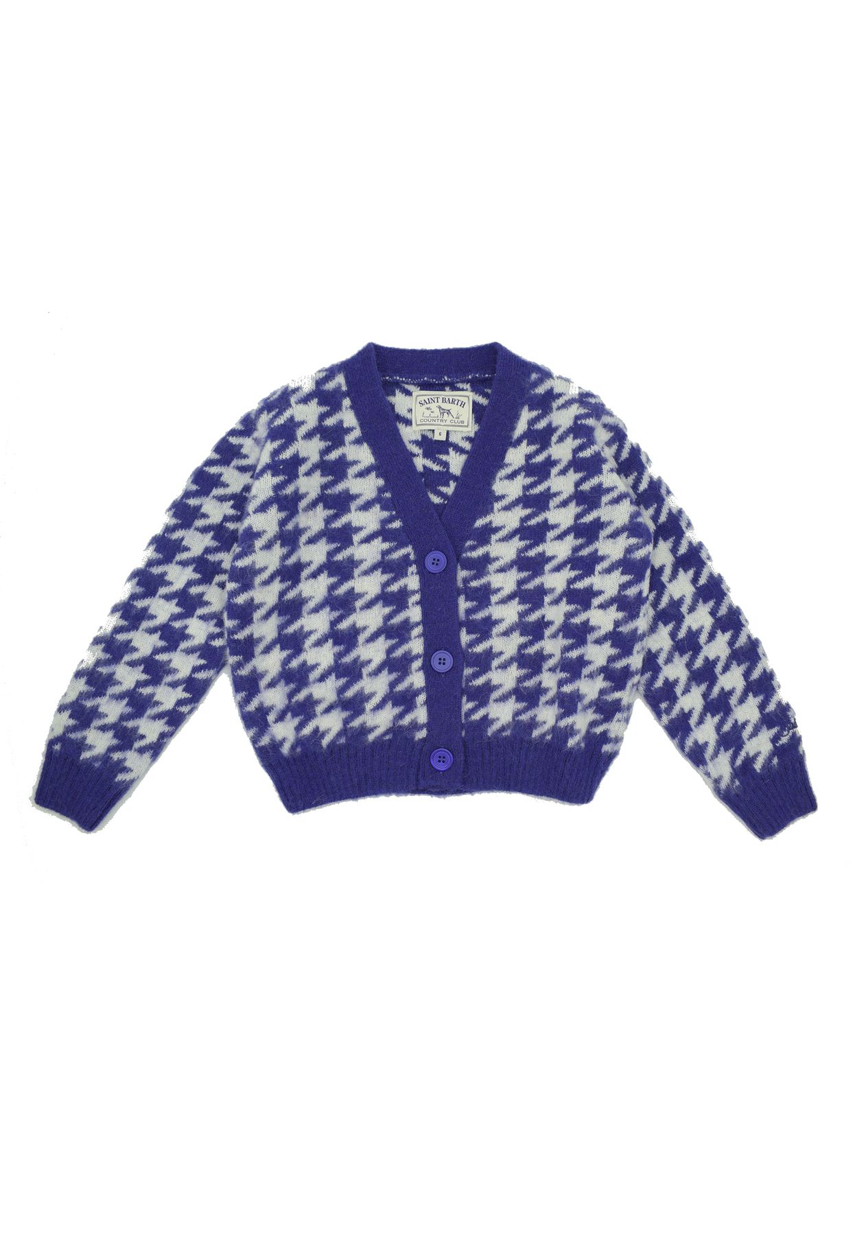 CARDIGAN PIED DE POULE VIOLA E BIANCO.