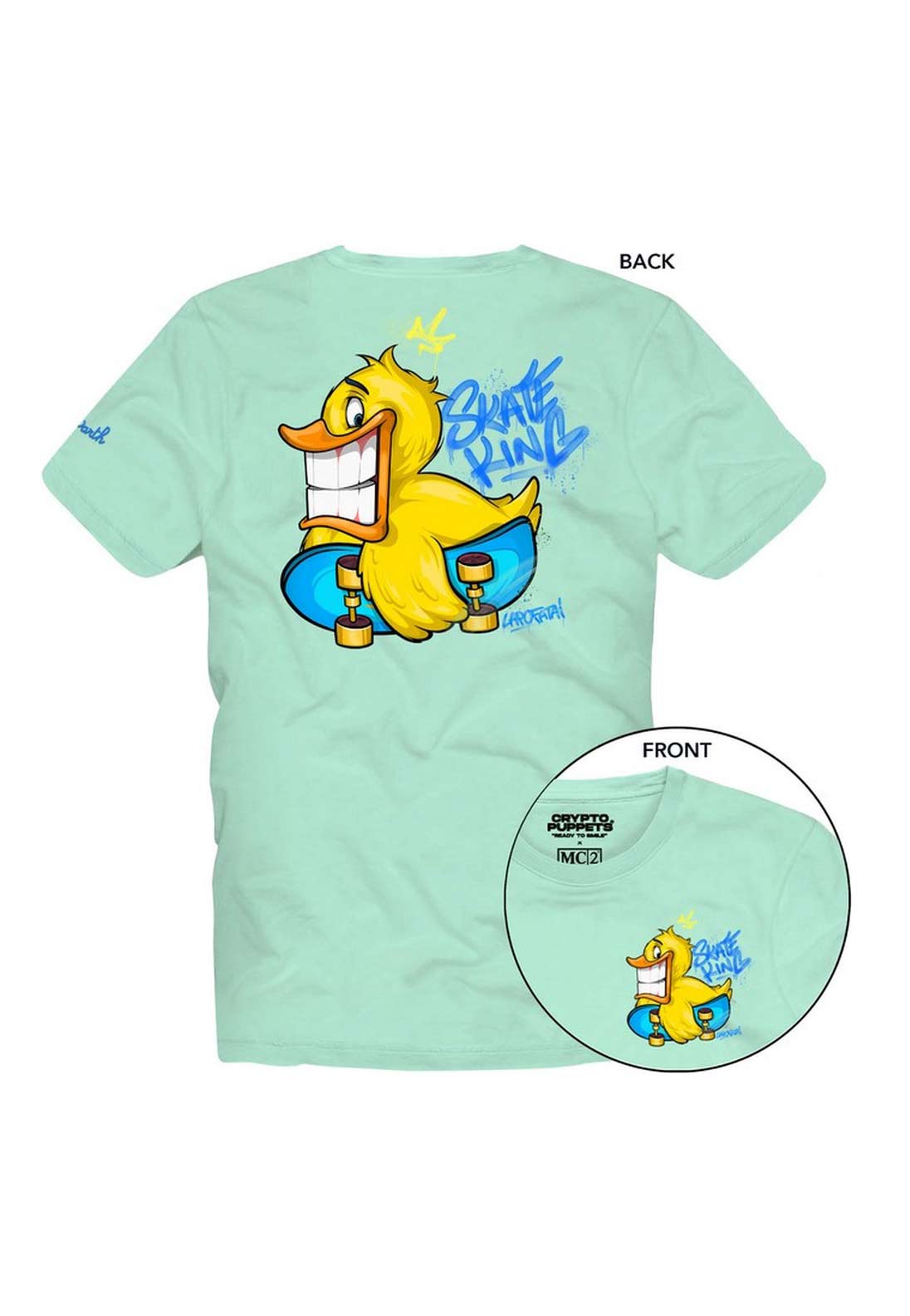 T-SHIRT VERDE ACQUA PER BAMBINO STAMPA DUCKY SKATEBOARD.