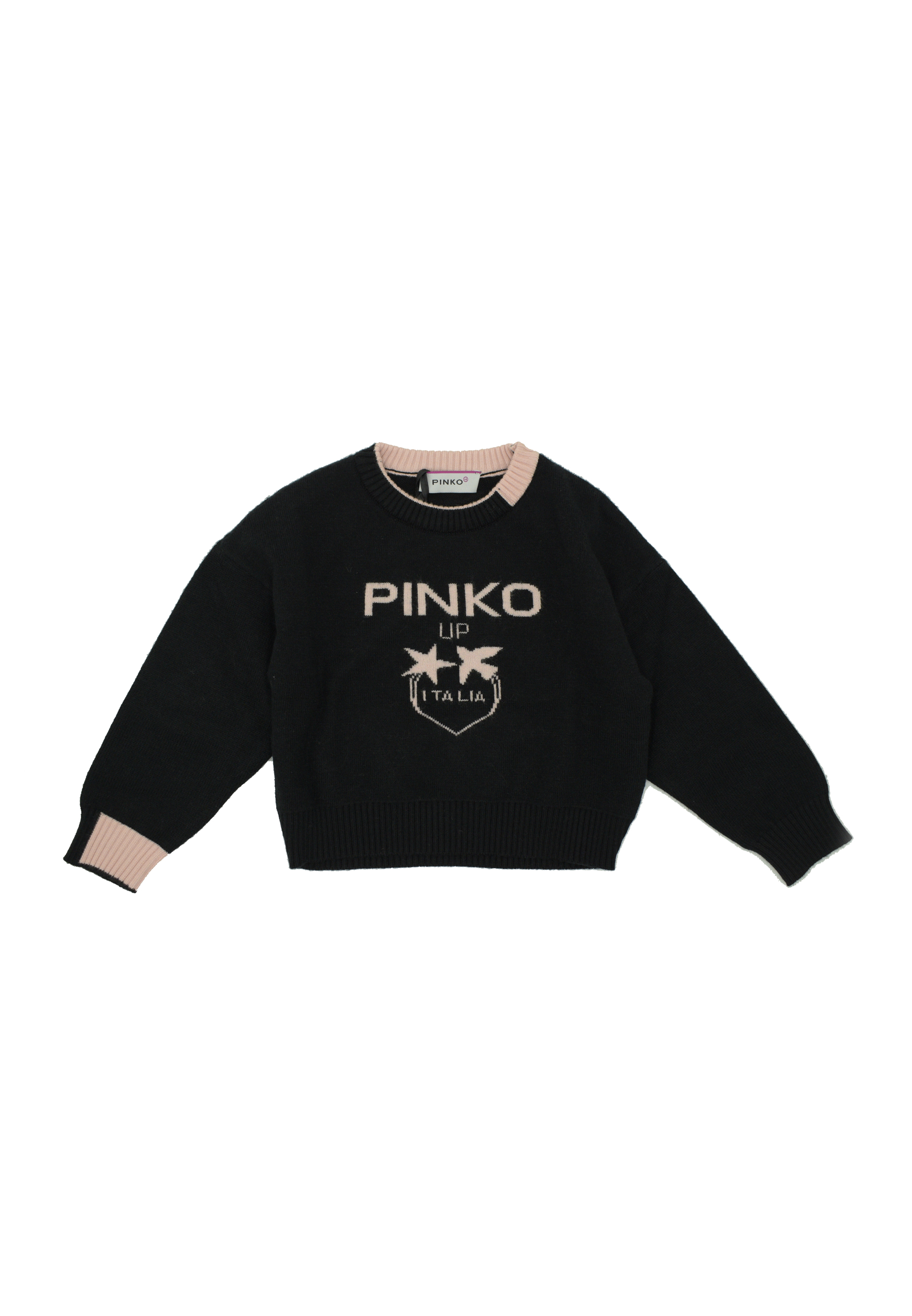 MAGLIONE PER BAMBINA NERO CON LOGO ROSA.