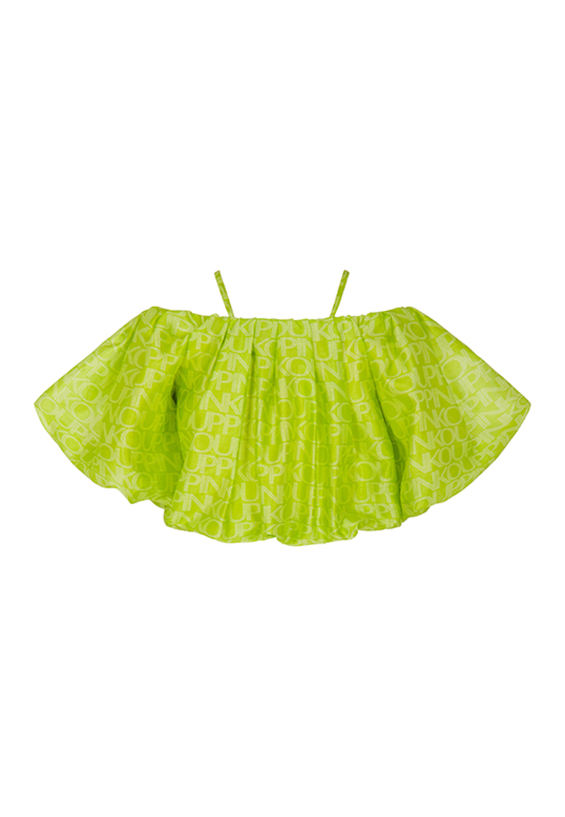 TOP VERDE IN TAFFETA' TESSUTO LOGO ALLOVER.
