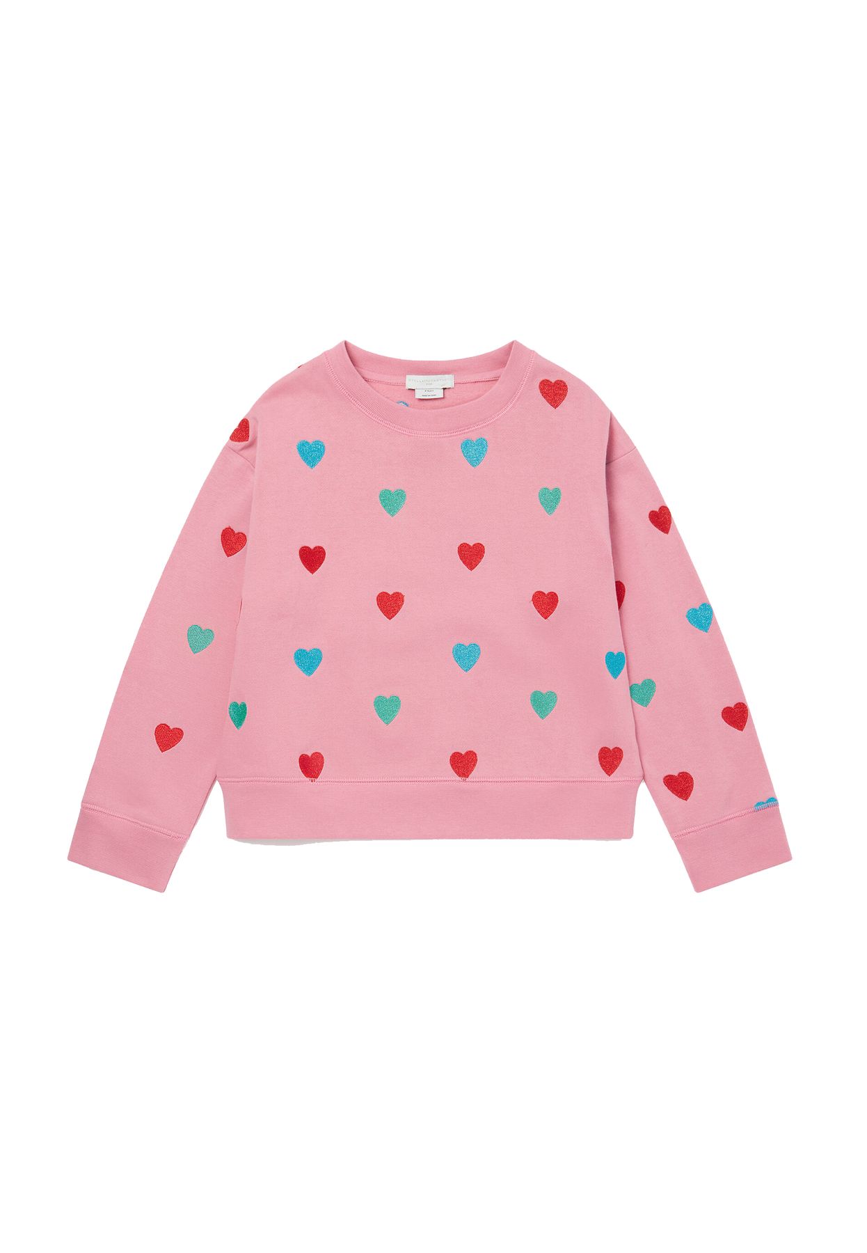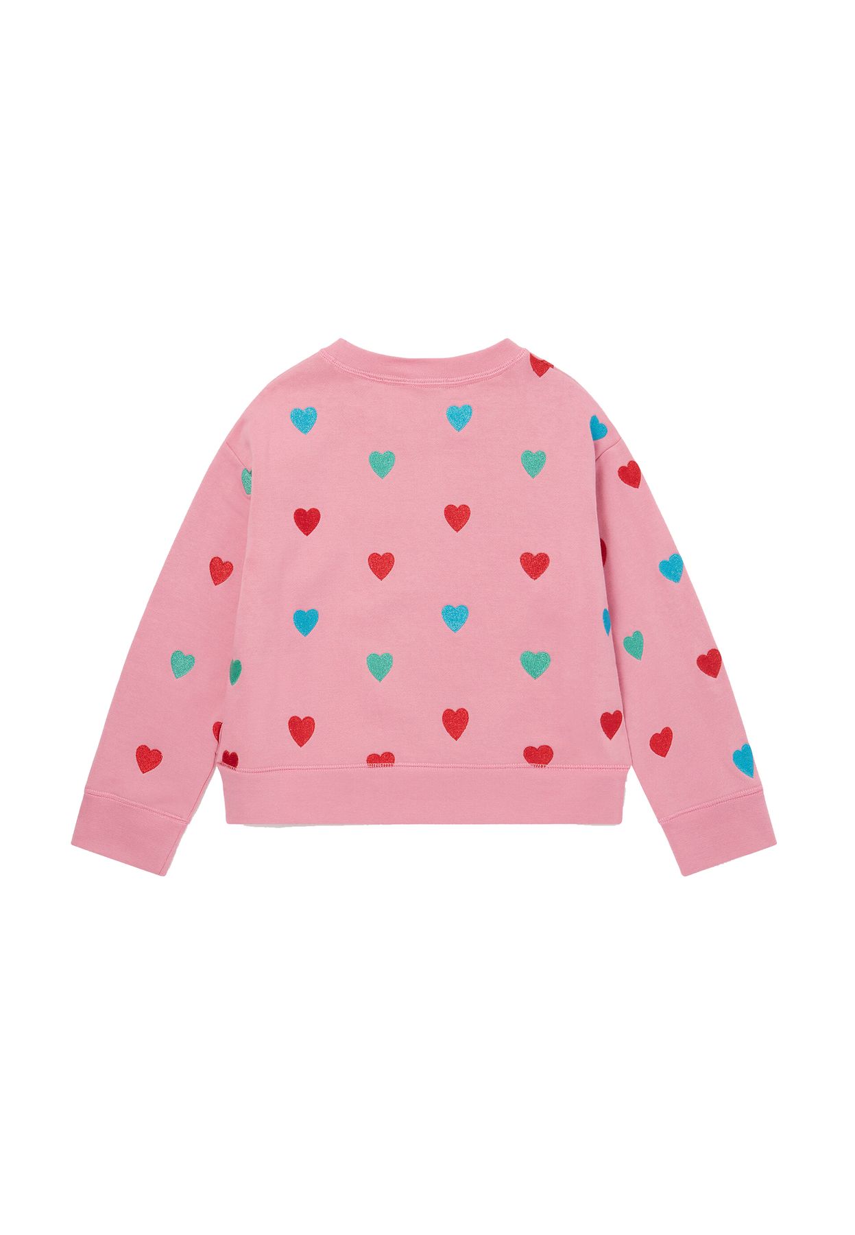 FELPA ROSA PER BAMBINA CON CUORI MULTICOLOR RICAMANTI.