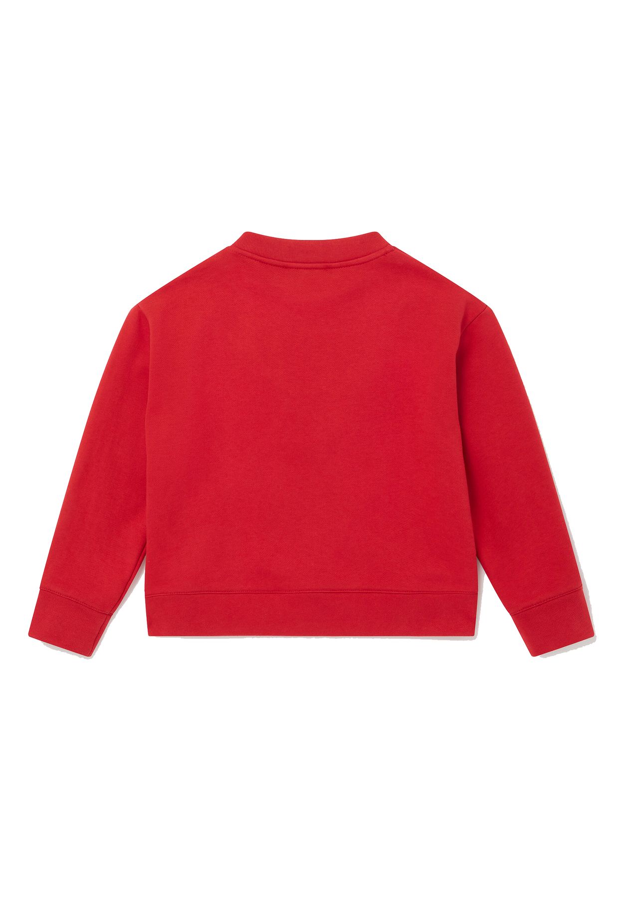 FELPA ROSSA IN COTONE SOSTENIBILE CON FRANGE MULTICOLOR.