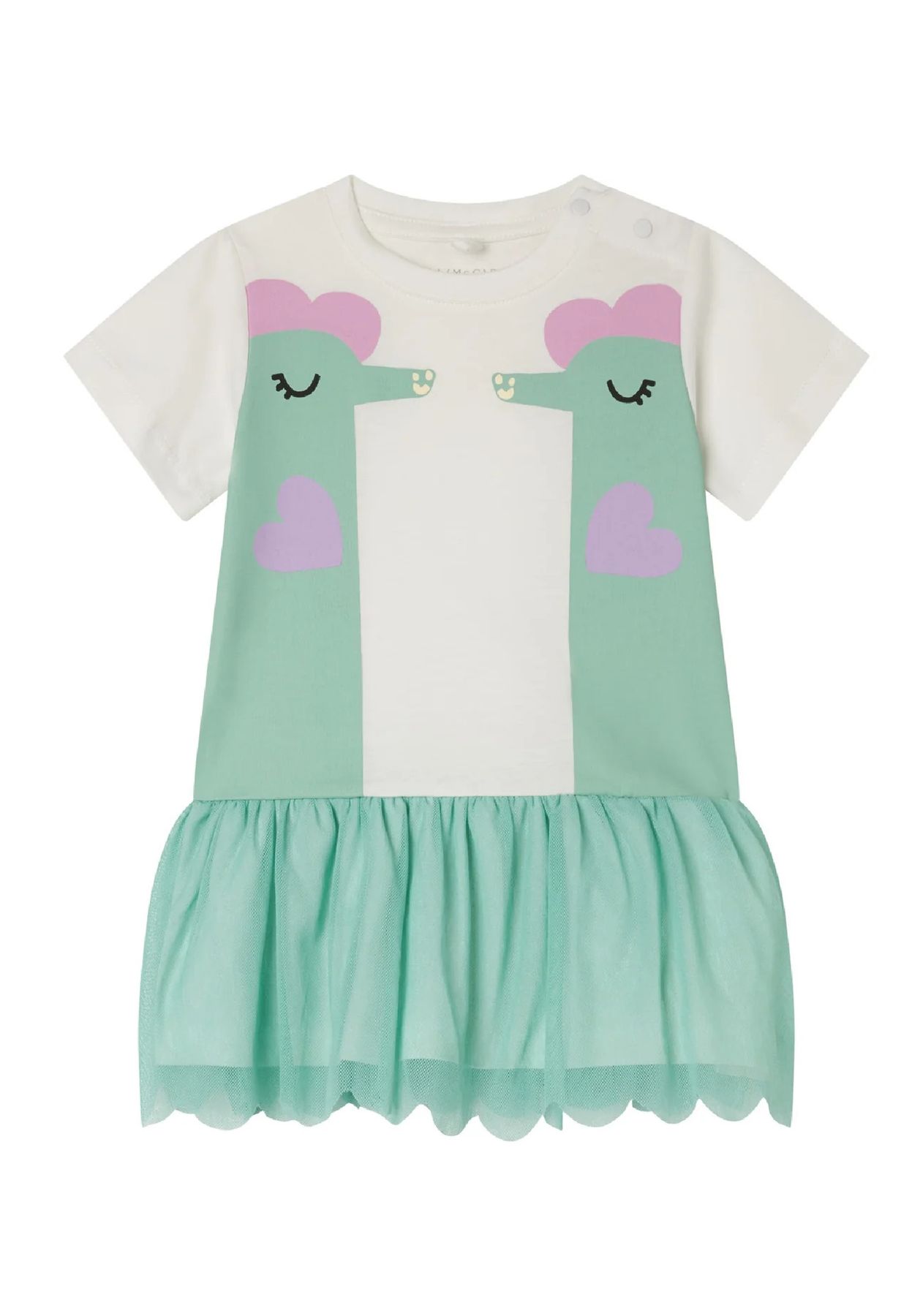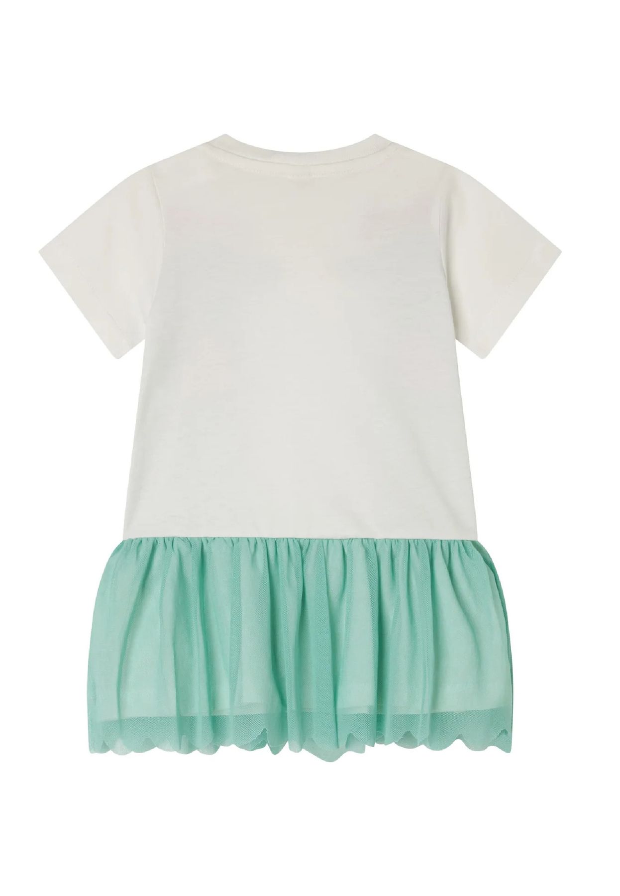 ABITO PER NEONATA CON STAMPA E GONNA IN TULLE VERDE.