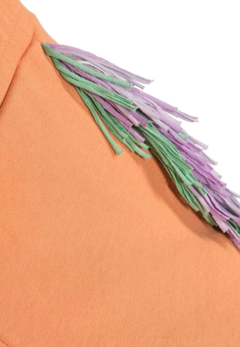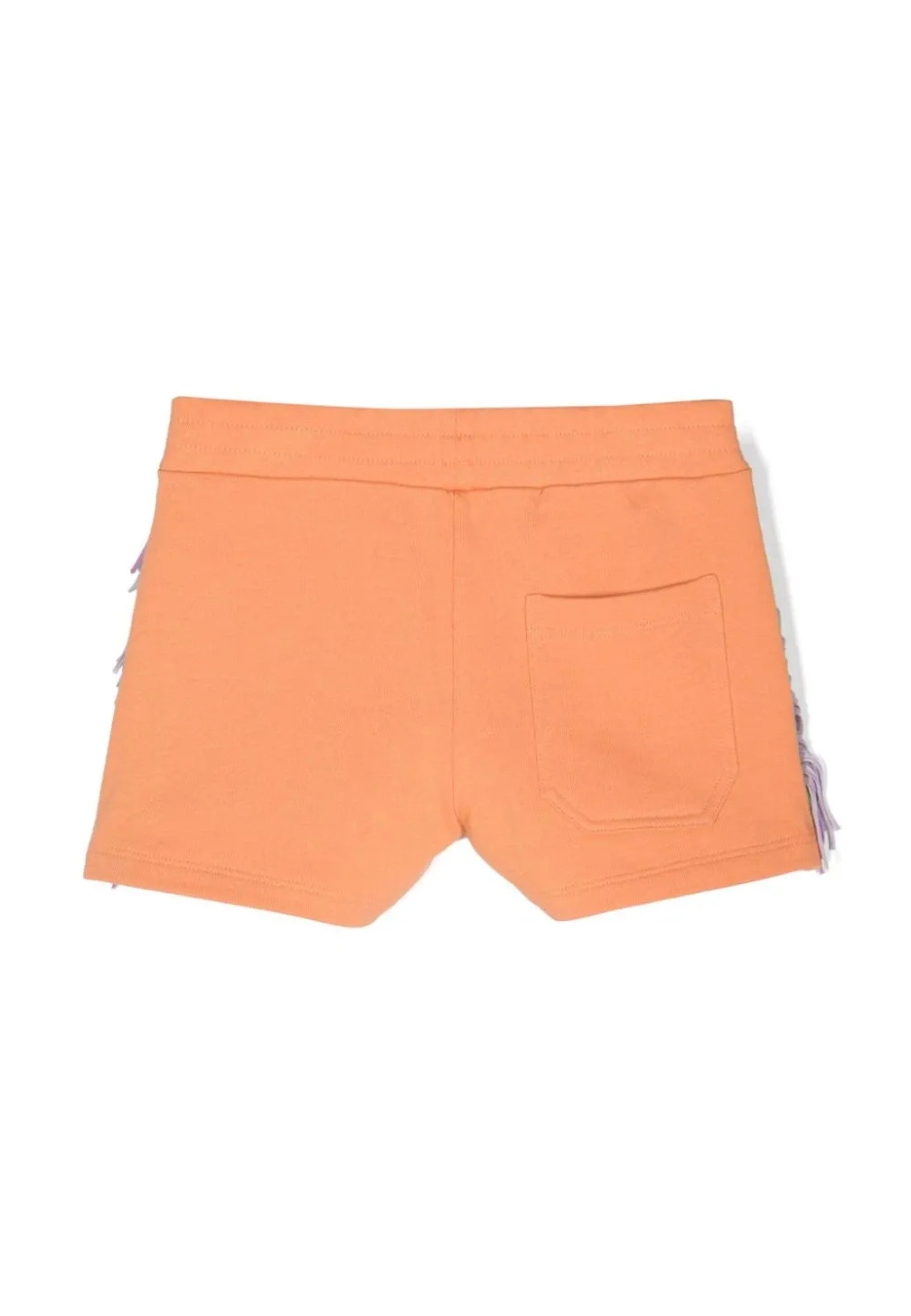 PANTALONCINO ARANCIONE PER BAMBINA IN FELPA,CON FRANGE.