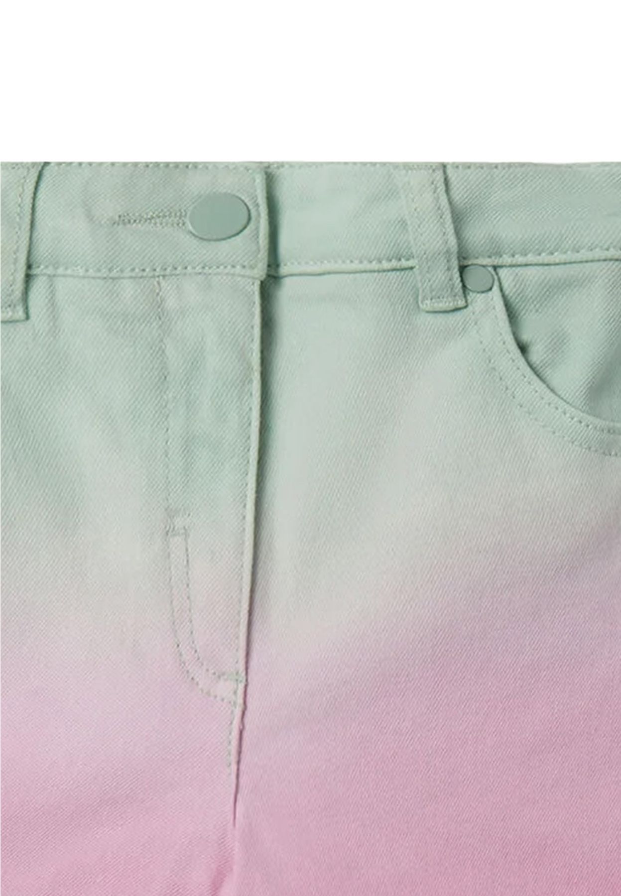 SHORTS PER RAGAZZA SFUMATO VERDE ACQUA E GLICINE.