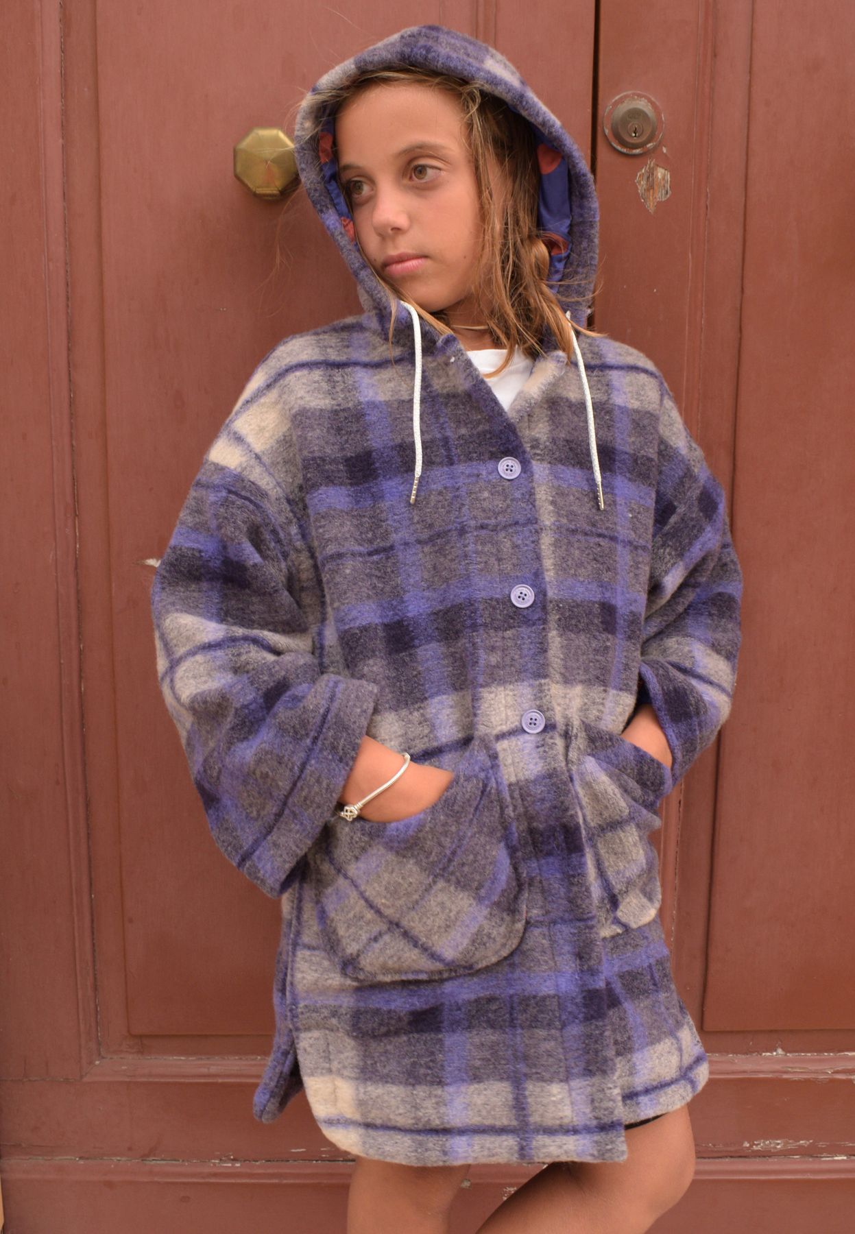 L'articolo Manila Grace Bambina Cappotto Con Cappuccio Per Ragazza A Quadroni Viola . è stato aggiunto al carrello