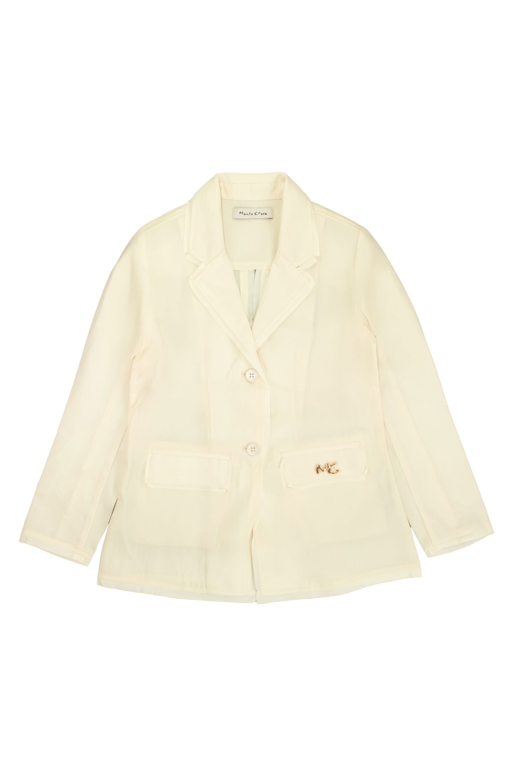 L'articolo Manila Grace Bambina Giacca Per Ragazza Panna Con Spilla Con Logo Oro. è stato aggiunto al carrello