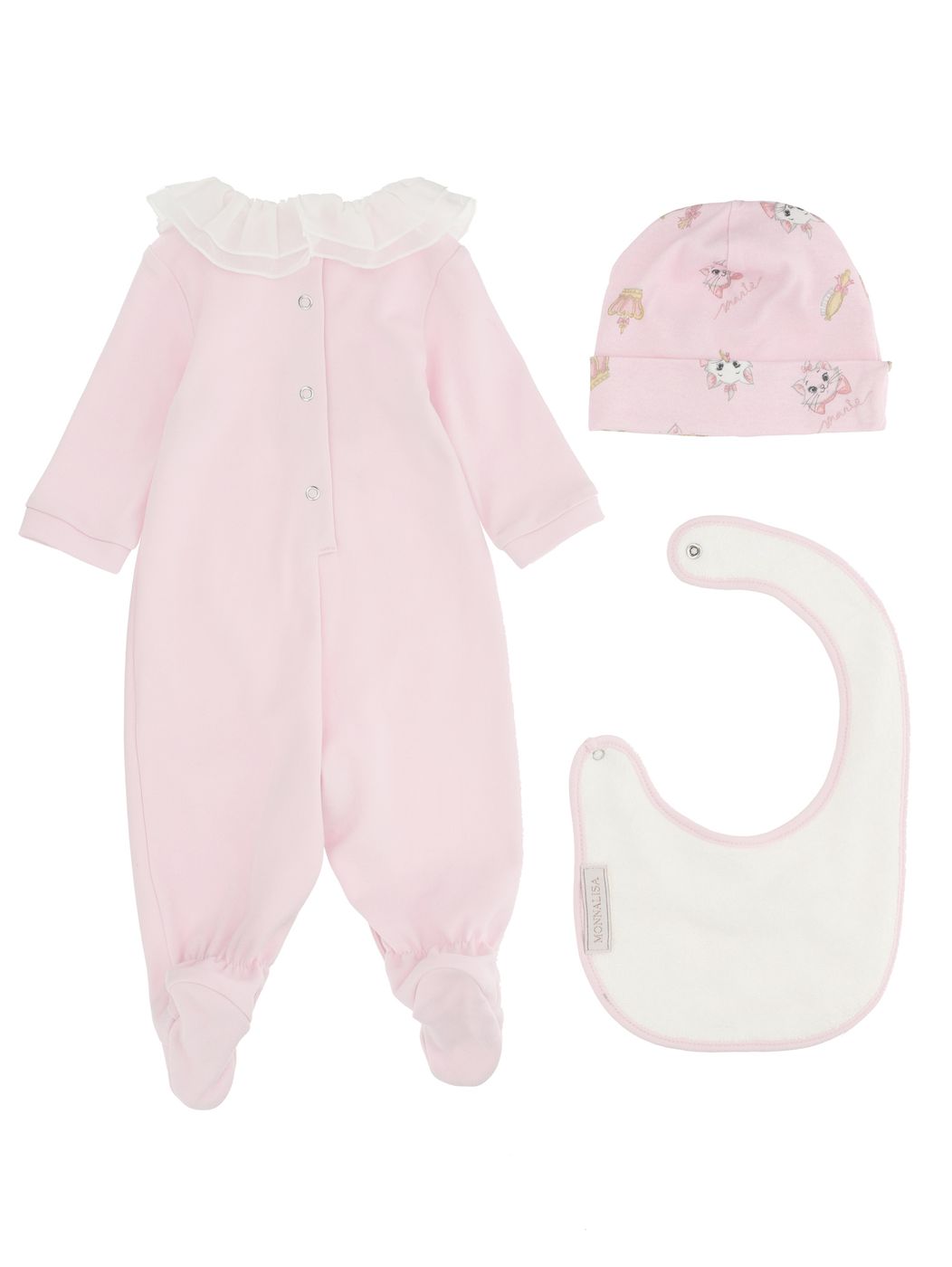 L'articolo Monnalisa Neonata Set Per Neonata Tutina Bavetta E Cappello,stampa Gatta. è stato aggiunto al carrello